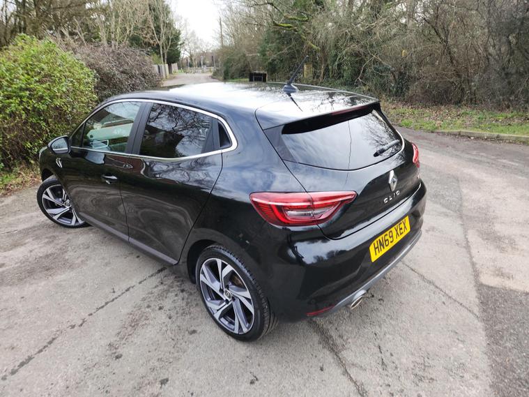 **JUST SERVICED, 2 KEYS, FINANCE WELCOME, AUTOMATIC, READY TO GO____This 2019 Renault Clio TCe RS Line offers a compelling blend of sporty design and modern technology. As a Euro 6 compliant model, it showcases a 1.3 litre petrol engine, ensuring efficient performance. The RS Line trim level brings a premium feel, enhanced by full LED front and rear headlamps that incorporate distinctive daytime running lights. Inside, you'll find the Easy Link system featuring a 9.3 inch touchscreen with navigation and smartphone replication, including Android Auto and Apple CarPlay, alongside Bluetooth connectivity for seamless integration of your devices. Convenience is further elevated by a handsfree keycard with push button start stop function and keyless entry, allowing for effortless access and ignition.This Clio is designed to impress with its practical and dynamic attributes. The acceleration is brisk, achieving 0 to 62 miles per hour in just 9.0 seconds, demonstrating its responsive nature. Parking is made simple with rear parking sensors, and the optional Parking Pack adds front sensors and a rear camera, providing comprehensive assistance for manoeuvring. Furthermore, the generous boot space offers ample room for luggage or shopping, making it a versatile choice for everyday needs. Its low CO2 emissions indicate a more environmentally conscious driving experience compared to many similar vehicles..