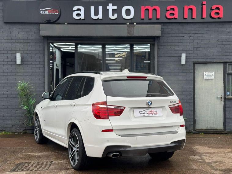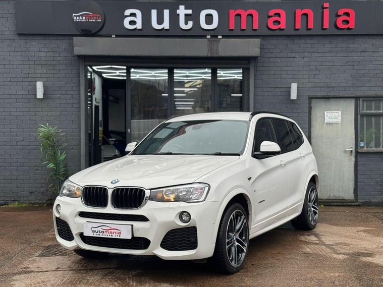 2015 BMW X3 finished in Metallic white with Low Miles & Economically Friendly. This car is a well Equipped Great First or City Car. Includes Interior Features such as; Adjustable Head Restraints, Air Conditioning, Bottle Holders - Front Centre Console and Door, Bottle Holders - Rear Door, Door Courtesy Lights, Driver and Passenger Sun Visor with Ticket Holder, Driver Seat Height Adjustment, Front Door Pockets, Height Adjustable Steering Column, Luggage Compartment Light, Rear Door Pockets, Split Folding Rear Seats - 60-40, Sun Visors with Vanity Mirrors Exterior Features, Allow wheels, Door Handles - Body Coloured, Door Mirrors - Body Coloured, Electric Adjustment and Heated Door Mirrors, Electric Windows - Front and Rear, One Touch Down Drivers Window Control, Rear Spoiler with Integrated Brake Light, Tyre Repair Kit Other Features and Key Information 12V Power Outlet - Front x2, Cruise Control with Speed Limiter, Daytime Running Lights, Power Assisted Steering, RDS Radio-CD Player with MP3 Compatibility, Speakers x2, Trip Computer, Tyre Pressure Monitoring System - TPMS, USB and AUX Connections, ABS - Anti-Lock Brake System, Airbags - Driver, Airbags - Front Passenger, Airbags - Front Side, Airbags - Full Length Curtain, BAS - Brake Assist System, Childproof Rear Door Locks, ESP - Electronic Stability Programme, Front and Rear Seatbelt Reminder, Front Passenger Airbag De-Activation Switch, Immobiliser, ISOFIX Child Seat Anchorage Points - Rear - Outer Rear, Remote Central Locking. *NO HIDDEN ADMIN FEES* 1 YEAR AA BREAKDWON COVER* MINIMUM 3MM TYRE DEPTH, *NO EXTRA CHARGE FOR OUR 3 MONTHS WARRANTY *NO FUEL CHARGES *NO SURCHARGE FOR CREDIT CARDS We supply our vehicles with a Minimum 9 MONTHS MOT Test. If the vehicle requires a service in the next 3 months or 3000 MILES (WHICHEVER COMES SOONEST) we will service the vehicle before delivery. We are fully authorised & Regulated by the Financial Conduct Authority (FCA) and can offer a wide range of finance products and advice. Please visit our website at dealer's website to find out more about us and detailed directions to our site also view our full range of stock. With Over 65 similar cars always available..