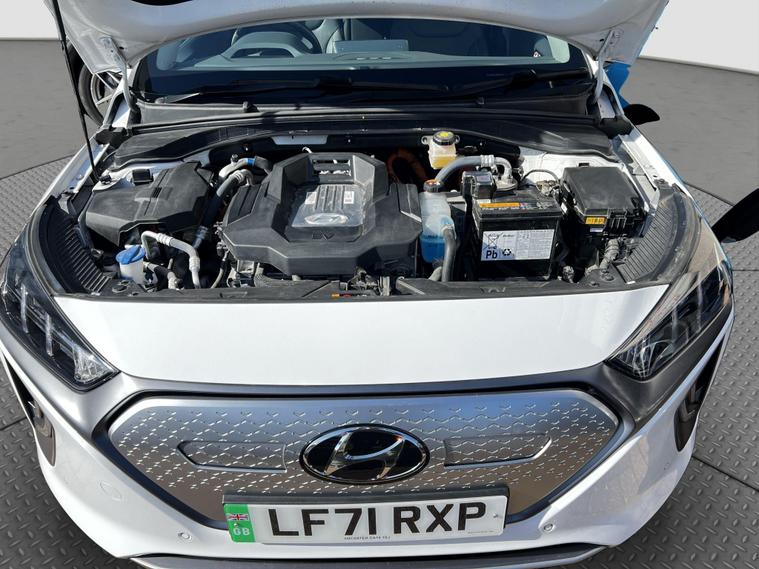 With a full service history and its last service completed on 25th April 2025 at 34, 845 miles, this 2021 Hyundai IONIQ Premium offers peace of mind. As an electric vehicle, it provides an efficient and environmentally conscious driving experience. The Premium trim includes desirable features such as a wireless phone charging pad, rear parking sensors, automatic headlights with dusk sensor, and Apple CarPlay. Enjoy high-quality audio with the upgraded Infinity sound system, complete with multiple speakers, a subwoofer, and an external amplifier. The car has a MOT valid until April 2026 and comes with a 6-month warranty for added reassurance.The Hyundai IONIQ has a 43 kWh battery with a maximum range of 193 miles when new. Charging at home using a 7kW charger takes approximately 6 hours and 5 minutes, while the fastest public charging time from empty to 80% is just 54 minutes. The large boot offers practicality, making it suitable for various needs, whether you're running errands or going on longer trips..