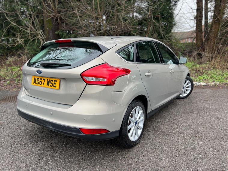 This 2018 Ford Focus T Titanium boasts an MOT valid until September 2026, offering excellent peace of mind for the next owner. Under the bonnet, you'll find an efficient 1.0 litre petrol engine that meets Euro 6 emissions standards. This model comes equipped with automatic headlights, keyless entry for effortless access, and dual zone electronic automatic temperature control to keep everyone comfortable. Navigating and parking are made simpler with the Ford SYNC3 DAB navigation system and rear parking distance sensors.The Titanium trim level ensures a well appointed driving experience, and the large boot space provides ample room for shopping, luggage, or sports equipment. These features, combined with the reliable Ford Focus T Titanium designation, demonstrate a vehicle that offers a superior level of convenience and practicality compared to other cars in its class..