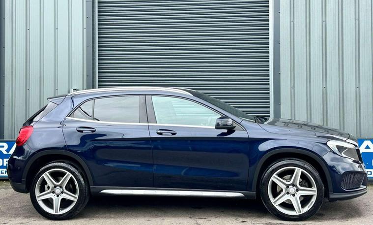 Mercedes-Benz GLA 2.1 220 D 4Matic AMG Line Executive Auto 4WD 5dr Euro 6 ULEZ FREE. Finished in Metallic Blue with Black Suede interior.19'' alloy wheels, 8'' media display, Apple CarPlay, Mercedes ME, Bluetooth, DAB radio, Dynamic Select driving modes, reversing camera, service indicator, electrically adjustable and heated door mirrors, privacy glass, automatic headlights, keyless go, air conditioning, two zone climate control, 3 spoke Nappa leather wrapped multifunction steering wheel, front and rear parking sensors, cruise control, heated seats.Here at Saracen Motor Group we have been awarded AA Platinum dealership recognition along with being nominated for best customer service by Autotrader for 2021, 2022, 2023, 2024 & 2025. We are a 5-star dealership with over 600 5-star reviews across all internet platforms including Autotrader and have been regarded as one of the best dealerships to buy from in the UK.Our preparation team inspects each vehicle to the highest level possible for its age and mileage. You can rest assured your next car has been cared for to the highest standard. Service history, V5 and the HPI certificate will all be present on viewing and collection. With our location based in Battlesbridge, Essex you can enjoy a haggle-free buying experience where you can drive away the same day if prior arranged, additional fees apply please see our website for details..