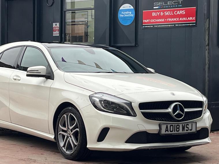 SELECT MOTORS (GB) IS DELIGHTED TO OFFER YOU THIS DAZZLING MERCEDES BENZ A180 SPORT 5DR IN WHITE COLOUR COMPLEMENTED WITH 17IN 5-TWIN SPOKE DESIGN ALLOY WHEELS. THIS VEHICLE HAS AN IMPRESSIVE SPECIFICATION WHICH INCLUDES THE FOLLOWING; PANORAMIC ROOF, SATELLITE NAVIGATION SYSTEM, CARPLAY FOR IPHONE AND ANDROID AUTOS, REVERSING CAMERA WITH 180 DEGREE VIEW, FRONT HEATED SEATS, BLUETOOTH CONNECTIVITY FOR PHONE AND MEDIA, DAB-FM/AM RADIO, CRUISE CONTROL WITH LIMITER, ATTENTION ASSIST, AUTOMATIC CLIMATE CONTROL WITH ZONE DISPLAY, LED DAYTIME RUNNING LIGHTS, TYRE PRESSURE WARNING SYSTEM. THIS VEHICLE IS ULEZ EXEMPT. WE ARE OFFERING NATIONWIDE DELIVERY ON ALL VEHICLE (PLEASE GET IN TOUCH DIRECTLY FOR DETAILS). WE CAN ALSO CONDUCT VIRTUAL VIEWINGS AND ACCOMMODATE ANY REQUESTS YOU MAY HAVE. ALL OUR ADVERTISED STOCK IS TEST-DRIVEN, INSPECTED BY OUR MECHANIC TO MAKE SURE OUR CUSTOMERS DRIVE AWAY WITH THE BEST QUALITY CARS. WE CAN PROVIDE A VIDEO WALK AROUND OF THIS VEHICLE UPON REQUEST., ALL OF OUR VEHICLES ARE SUPPLIED WITH A 3 MONTHS WARRANTY WITH EXTENDED OPTION. 12 MONTHS FREE AA BREAKDOWN COVER. FINANCE AVAILABLE..