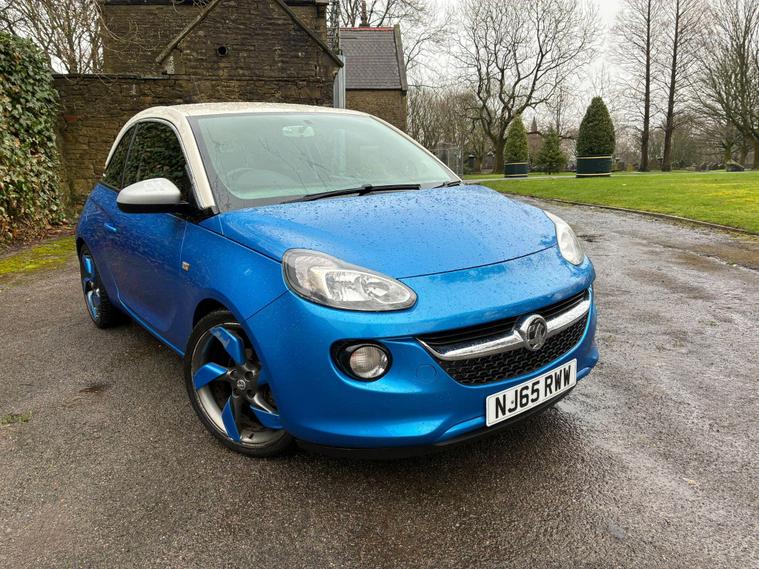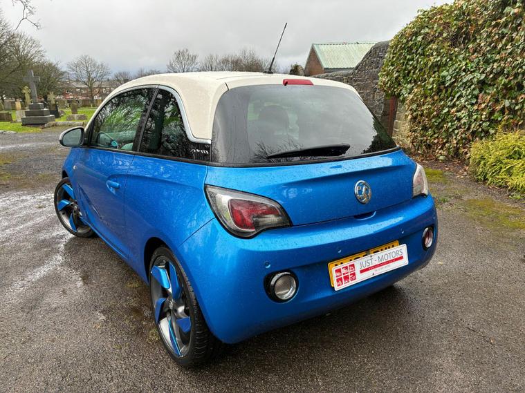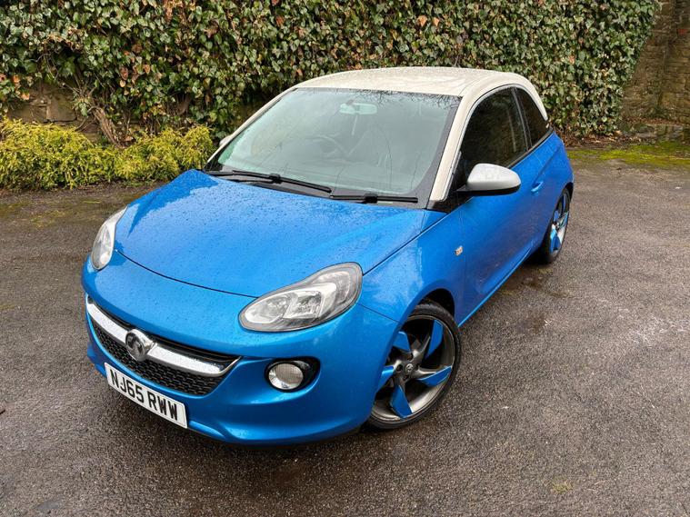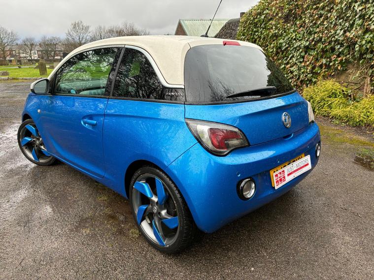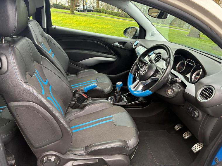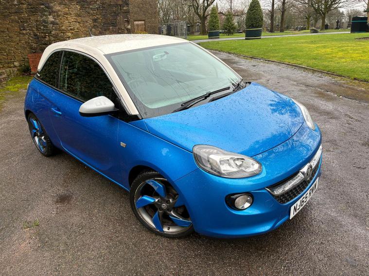 VAUXHALL ADAM 1.4 16V SLAM IN A BLUE/WHITE EXTERIOR COLOUR WITH BLACK/BLUE HALF LEATHER INTERIOR SEATS WITH BLUE INTERIOR TRIM... LONG MOT... SERVICE HISTORY... FEATURING MULTIFUNCTION STEERING WHEEL WITH RADIO AND CRUISE CONTROL LIMITER... DAYTIME RUNNING LIGHTS DRL... FOG LIGHTS... PRIVACY GLASS... CITY DRIVE... FM TOUCHSCREEN RADIO WITH BLUETOOTH CONNECTIVITY AND AUX/USB PORTS... REAR PARKING SENSORS... CLIMATE CONTROL WITH FRONT AND REAR HEATED WINDOWS... ELECTRIC ADJUSTABLE SIDE MIRRORS... FRONT ELECTRIC WINDOWS... CENTRAL LOCKING DOOR CONTROLS... ALLOY WHEELS WITH DECENT TREAD ALL ROUND... WARRANTY INCLUDED... ALL PART EXCHANGES ARE WELCOME... OPTIONAL NATIONWIDE DELIVERY EXTRA... BOOK-INS AND VIDEO VIEWINGS ARE AVAILABLE... TEST DRIVES ARE WELCOME... FOR MORE INFORMATION CALL US TODAY ON 01616232309..