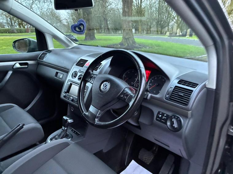 VOLKSWAGEN TOURAN 2.0 TDI MATCH IN A GREY EXTERIOR COLOUR WITH BLACK CLOTH INTERIOR WITH ISOFIX... SPACIOUS 7 SEATER VEHICLE... COMES WITH A LONG MOT... COMES WITH 2 REMOTE KEYS... COMES WITH A FULL SERVICE HISTORY... FEATURING MULTIFUNCTION STEERING WHEEL WITH RADIO CONTROLS... PRIVACY GLASS... ROOF BARS... CRUISE CONTROL LIMITER... FRONT AND REAR PARKING SENSORS... PARK ASSIST... REAR FOG LIGHT... FM CD TOUCHSCREEN RADIO WITH BUILT IN SATNAV, BLUETOOTH CONNECTIVITY, RADIO SETTINGS AND A AUX PORT... FUEL CAP RELEASE LEVER... CLIMATE CONTROL WITH REAR HEATED WINDOWS... ALL ROUND ELECTRIC WINDOWS... ELECTRIC ADJUSTABLE SIDE HEATED WINDOWS... CENTRAL LOCKING DOOR CONTROLS... CUP HOLDERS... ALLOY WHEELS WITH DECENT TREAD ALL ROUND... WARRANTY INCLUDED... ALL PART EXCHANGES ARE WELCOME... OPTIONAL NATIONWIDE DELIVERY EXTRA... BOOK-INS AND VIDEO VIEWINGS ARE AVAILABLE... TEST DRIVES ARE WELCOME... FOR MORE INFORMATION CALL US TODAY ON 01616232309..