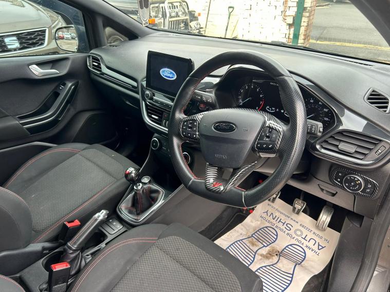 This 2019 Ford Fiesta ST Line is a superb example with remarkably low mileage for its age, having covered just 46, 300 miles. This popular hatchback boasts a 1.0 litre petrol engine and meets Euro 6 emissions standards, contributing to its low CO2 emissions. Inside, you'll find the convenient Ford SYNC system featuring a touchscreen, DAB radio, and seamless integration with Apple CarPlay and Android Auto, alongside Bluetooth connectivity. The NCAP Pack includes automatic headlights, which are also featured as part of the automatic on-off function, and manual air conditioning to keep you comfortable.The Ford Fiesta ST Line offers an engaging driving experience, reaching 0-62mph in 10.6 seconds, demonstrating its responsive performance. These highlights, combined with its economical running costs and comprehensive feature set, position this Fiesta as an excellent choice compared to other vehicles in its class. On v car cat s..