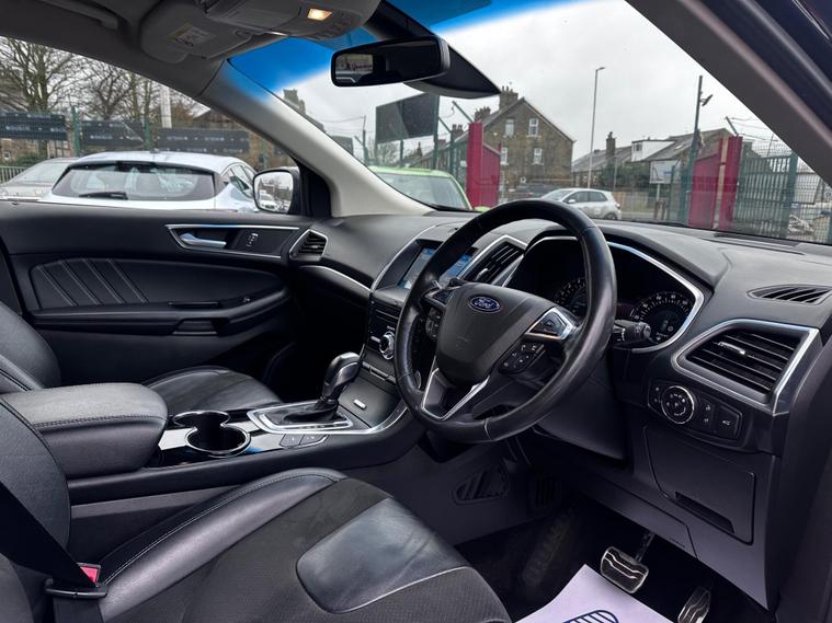 Turn heads on every street with this stunning 2018 Ford Edge 2.0 TDCi ST-Line Powershift AWD, finished in sleek black and built to impress. Powered by a responsive and efficient 2.0 TDCi diesel engine, paired with the smooth Powershift automatic gearbox and intelligent all-wheel drive, it delivers confident performance in all conditions while remaining economical to run. The ST-Line styling gives it a bold, athletic presence with striking alloy wheels, sporty body detailing, and a commanding road stance. Inside, you’ll find a refined, spacious cabin packed with modern technology, premium finishes, and the comfort you expect from a top-spec SUV. Practical, powerful, and effortlessly stylish, this Ford Edge offers the perfect balance of family versatility and executive appeal — a standout addition to our stock that’s ready for its next owner. This vehicle is in Great Condition and comes with Full Service History, 2 Keys, and is HPI Clear! The Specifications for this vehicle include: 20in Platinum Grey Alloy Wheels with all 4 matching Pirelli Tyres, Front and Rear Parking Sensors with a Reversing Camera, Sat Navigation, Bluetooth Media and Telephone, Full Black Leather Seats-Heated-Electric-Memory, Adaptive Steering System, Ambient Lighting, Cruise Control, Climate Control, Keyless Pack, Lane Keeping Aid with Auto Headlights and Rain Sensing Front Wipers, Heated Windscreen with Heated Washer Jets, Sony Premium Sound System, Full Black Leather Steering Wheel-Multi-Function, Electrically Opening and Closing Boot, Black Roof Rails and Privacy Glass.This vehicle comes with 6 months warranty, 12 Months MOT and 12 Months AA Breakdown Cover, part exchange is welcome, finance packages are also available. Deliveries are also available on trade prices.For further information you can contact us via email, messages or give us a call via the numbers or email below:01274914032 hnsmotors7 dealer's website