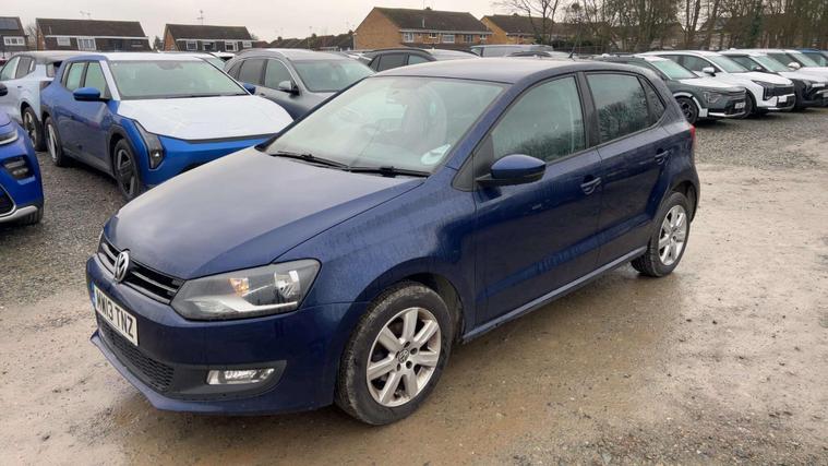 **Volkswagen Polo 1.2 Match Edition Euro 5 5dr****Registration:** MW13TNZ**Year:** 2013 (13)**Mileage:** 82, 870 miles**Fuel:** Petrol**Transmission:** Manual**Colour:** Blue**Owners:** 1 Owner from new**Price:** £4, 750---**Step-by-step vehicle details:**• Only 82, 870 miles• 1 Owner from new• Partial Service History• Last serviced on 06 July 2024 at 75, 839 miles• 12 months MOT will be provided on purchase• Clear vehicle history check• ULEZ compliant – no ULEZ charge• Very economical and reliable 1.2L petrol engine• Low insurance group – affordable running costs• Smooth manual gearbox• **3 MONTHS AA WARRANTY AND 12 MONTHS AA BREAKDOWN COVER**---**Features and equipment:**• RCD 510 touchscreen DAB radio• Bluetooth phone connectivity• Climate control air conditioning• Convenience Pack• Electric windows• Electric mirrors• Remote central locking• Multifunction steering wheel• Alloy wheels• Spacious and practical hatchback---A very well maintained example with only one owner, low running costs, and excellent reliability. Ideal first car or economical daily driver.---**For more available cars:* dealer's website or call:** 01223964083**Postcode:** CB24 9LQ.