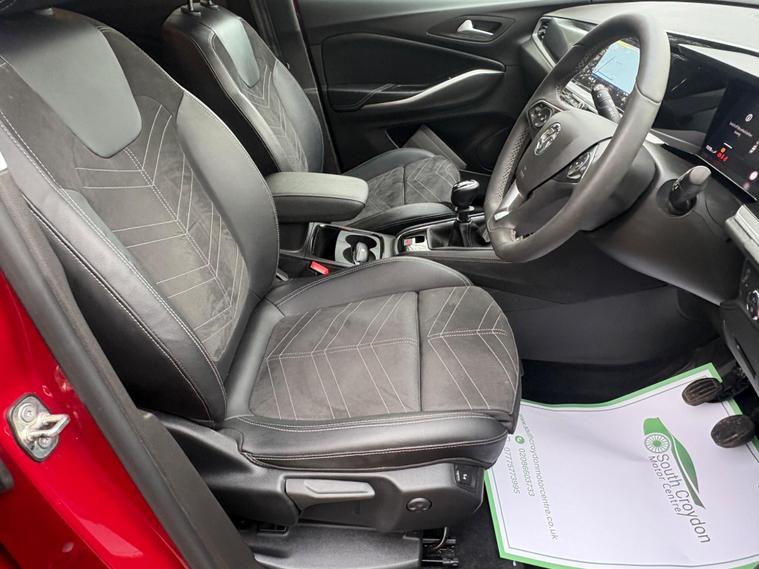 The Vauxhall Grandland Turbo Ultimate is a 2024 model that boasts a 1.2L Petrol Engine, meeting the stringent Euro 6 emission standards. This trim level is the top-of-the-range variant, offering a comprehensive package of features. The vehicle's interior is equipped with the Multimedia Navi Pro System, which includes Android Auto, Apple CarPlay, and Bluetooth connectivity, ensuring seamless integration with your smartphone. The Ergonomic Active Heated Sports Front Seats, certified by AGR, provide exceptional comfort, while the Dual-Zone Electronic Climate Control allows for a tailored driving experience. Additionally, the vehicle is fitted with Front and Rear Parking Distance Sensors, Adaptive IntelliLux LED Pixel Headlights, and a range of other advanced safety features.This Vauxhall Grandland Turbo Ultimate has been well cared for, with a low mileage of just 11, 175 miles for its age, indicating a history of careful ownership. The vehicle has had only one owner, suggesting a high level of maintenance and attention to detail. With a fuel economy of up to 46 mpg, this model is an economical choice for those looking to save on fuel costs. Furthermore, its low insurance group rating makes it an attractive option for those on a budget. The large boot space is another significant advantage, providing ample room for luggage or equipment. The vehicle's low CO2 emissions also make it an environmentally friendly choice. Overall, this Vauxhall Grandland Turbo Ultimate is a well-equipped, reliable, and eco-friendly vehicle that offers a range of benefits over similar models..