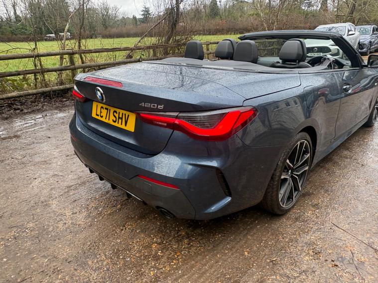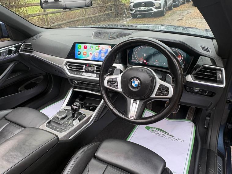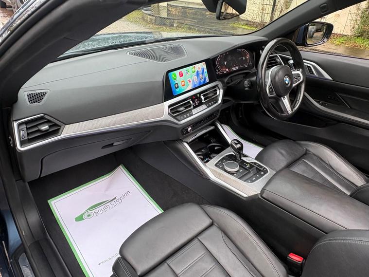 This 2021 BMW 4 Series 420d M Sport is a remarkable find, having been cherished by just one owner from new and boasting exceptionally low mileage for its age at only 29, 523 miles. This Euro 6 compliant model features a sophisticated 2.0L Diesel Hybrid engine, enhanced by mild hybrid technology and a 48v system for improved efficiency. The M Sport trim is further elevated by the M Sport Pro Package, which includes striking M Sport Brakes with distinctive red calipers, all designed to offer a refined driving experience.The M Sport designation ensures a sporty aesthetic and dynamic feel, while the inclusion of an Incorrect Fuelling Protection System adds a layer of practical reassurance. Beyond its performance and advanced technology, this BMW 4 Series offers generous boot space, making it a versatile choice for both daily commutes and longer journeys. These carefully selected features and its excellent provenance clearly set this vehicle apart from others you might find..