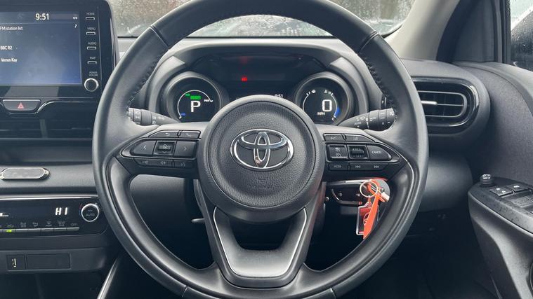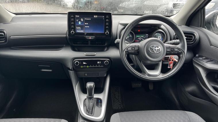 This 2022 Toyota Yaris VVT-h Design is a prime example of a well cared for vehicle, boasting a full service history and having had only one owner from new. This Toyota manufacturer approved Yaris is equipped with a 1.5L petrol hybrid engine, meeting Euro 6 emissions standards. Its low mileage of just 14, 787 miles for its age is a significant advantage. Notable features include automatic headlights, Toyota Safety Sense 2 with adaptive cruise control, automatic air conditioning, smartphone integration with Apple CarPlay and Android Auto, and a reversing camera for enhanced parking assistance.The exceptional fuel economy of this Yaris is a standout highlight, achieving an impressive 69 miles per gallon, which indicates it is more economical than many other vehicles in its class. Coupled with its low CO2 emissions, this makes it an environmentally conscious choice. This 2022 Toyota Yaris VVT-h Design also comes with a 12 month warranty, offering peace of mind for its next owner..
