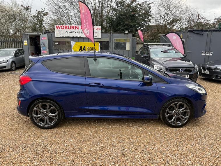 Are you looking for a stylish and comfortable vehicle? Then look no further than this Stunning Ford Fiesta! This popular hatchback features a 1.0 litre petrol engine. It comes equipped with the ST Line trim, enhancing its sporty appeal. Full Service History, Fresh Serviced, Mot will expires in Feb 2027, 2 keys, Last Lady owner since 2019, Satnav, Dab, Bluetooth, Radio Cd/player, Aircon, Aux in, Usb, Bluetooth, Electric windows, Electric mirrors, Central Locking, Alloys, All our vehicles are professionally valeted and sanitised, For more information please call us on 01908906928, We are an experienced used car dealership in the Milton Keynes area, We Woburn Cars look forward to see you and help you finding the perfect car. Part Exchange Welcome..