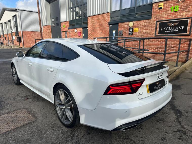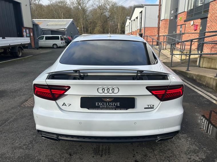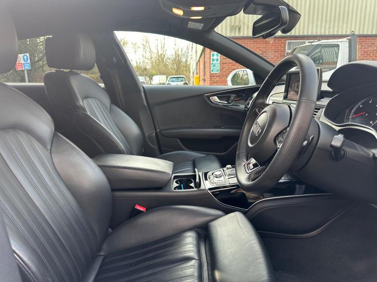 This 2016 Audi A7 TDI V6 Black Edition boasts exceptionally low mileage for its age, having covered just 56, 698 miles. This impressive example features a powerful 3.0 litre diesel engine paired with Audi's renowned four wheel drive system, ensuring confident performance in all conditions. As a Euro 6 compliant vehicle, it meets stringent emission standards. The Black Edition trim level enhances its striking appearance, while the inclusion of Audi Matrix LED headlights and an Acoustic and Visual Parking System for the front offers both advanced visibility and parking convenience. Inside, you will find electrically adjustable front seats with a memory function for the driver, and a deluxe four zone electronic climate control system for personalised comfort.Experience superior audio with the BOSE Surround Sound System, a premium branded sound system that elevates every journey. The Audi A7 also offers generous boot space, making it a practical choice for everyday use and longer trips. Its performance is equally impressive, with a swift 0-60mph acceleration time of just 5.5 seconds, demonstrating a dynamic driving experience that sets it apart from similar vehicles. These highlights collectively showcase the A7's blend of luxury, technology, and performance..