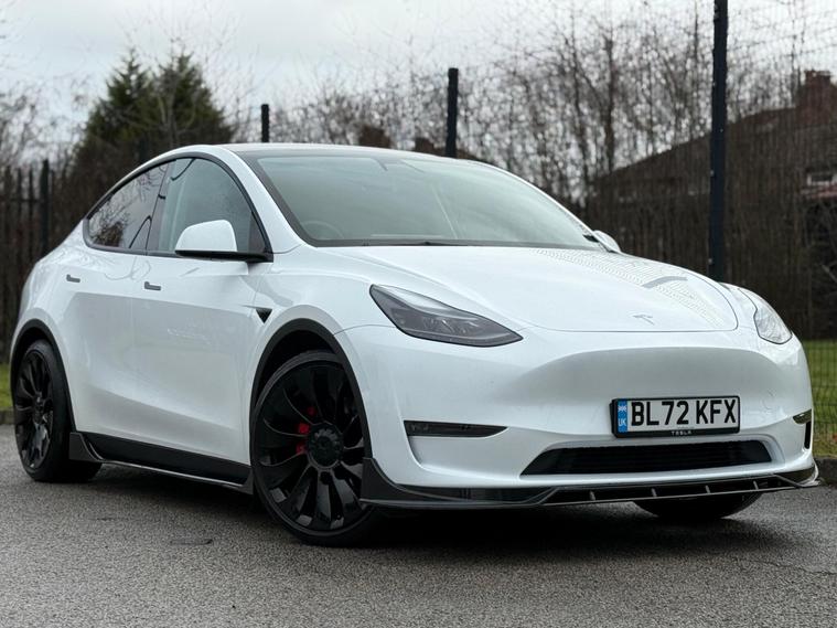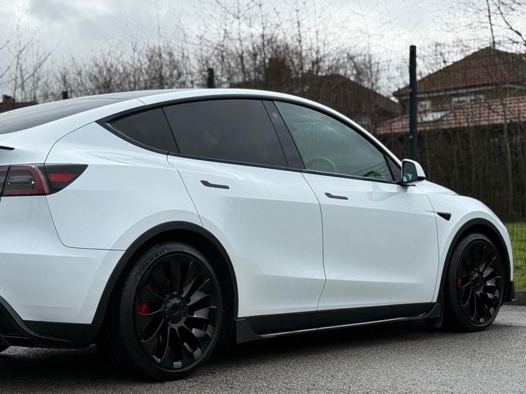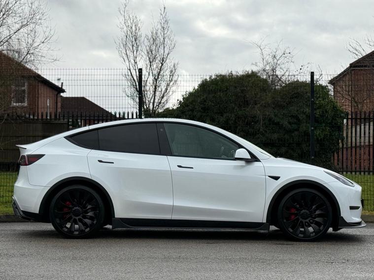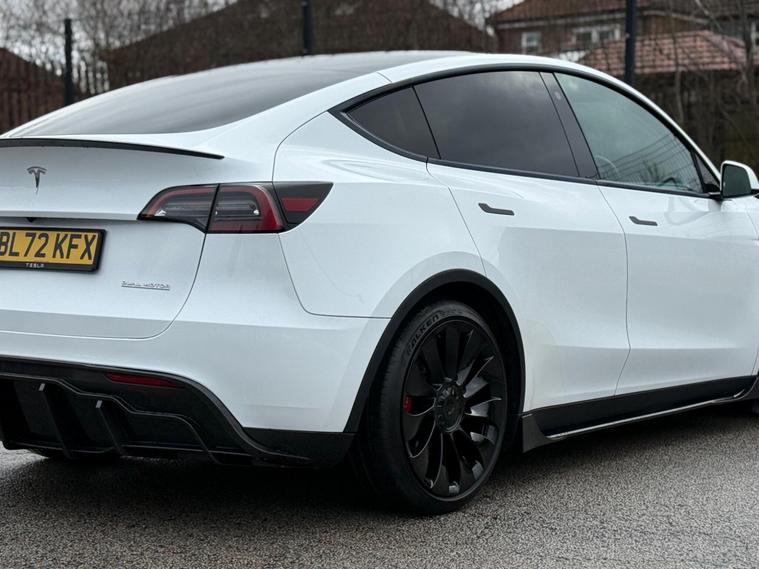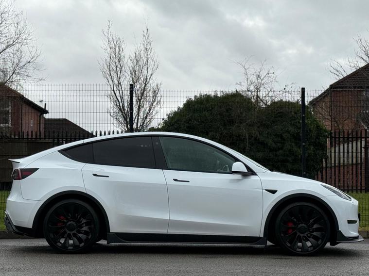 This Tesla Model Y (Dual Motor) Performance Auto 4WDE Finished in White and This Vehicle Comes with the Following Specification: 21in Alloy Wheels - Uberturbine (Black) | Black Leather | Navigation | Panoramic Roof | Navigation System | Climate Control | Heated Seats | Privacy Glass | Reverse Camera |Panoramic Windshield | Smart Air Suspension | 1 Owners | 2 Keys | ULEZ & Euro 6 | Heated Steering Wheel | Air Conditioning | Cruise Control | Privacy Glass | Full Carbon Fibre Kit | VAT Q | Enchanced Autopilot |.