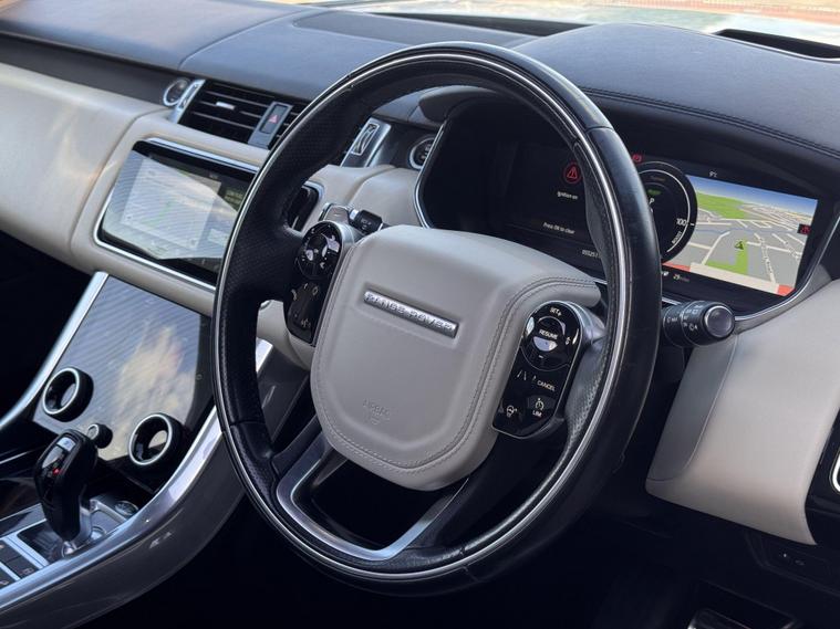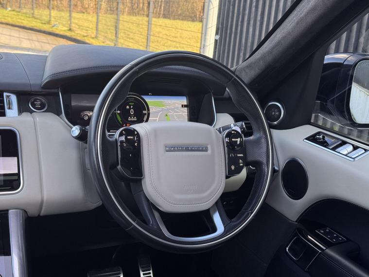 This Range Rover Sport P400e Autobiography Dynamic Finished in Fuji White and this vehicle comes with the following specification: 21in Alloy Wheels - 9 Spoke Style 9001 | Semi Aniline Perforated Leather - Ebony & Ivory | Pixel-Laser LED Headlights | Park Pro Pack | Head-Up Display | Meridian Sound System | TV- Digital | Privacy Glass | 22-way Memory Front Seats with Winged Headrests | Grand Black Vaneer | Four-Zone Climate Control | Front Centre Console Refridgerator Compartment | Heated & Ventillated Front & Rear Seats | Soft Close Doors | Electric Deployable Side Steps | Black Pack | Navigation | Bluetooth Audio & Connectivity | DAB & Radio |Apple CarPlay | Full Land Rover History | 2 Keys | Ambient Lighting.