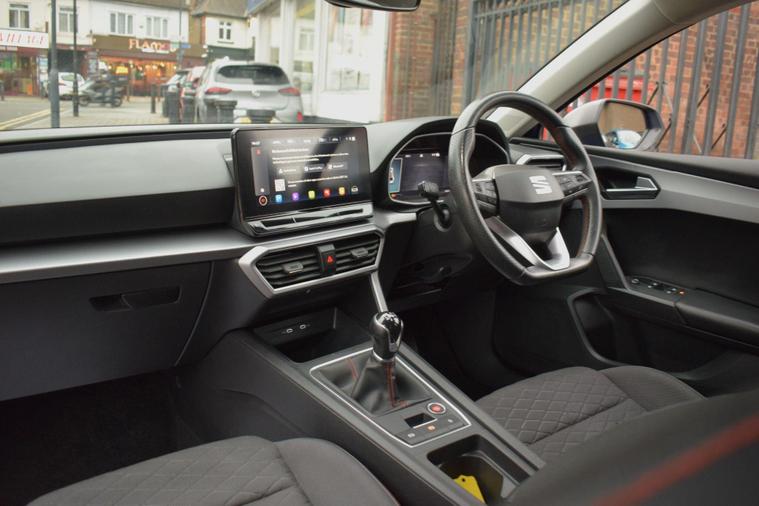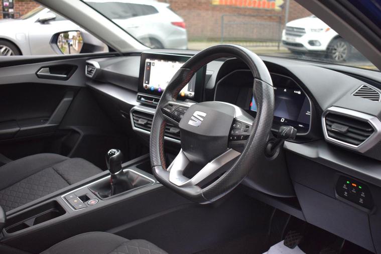 - Leather Flat Bottomed - Perforated Steering Wheel with Red Stitching and FR Logo