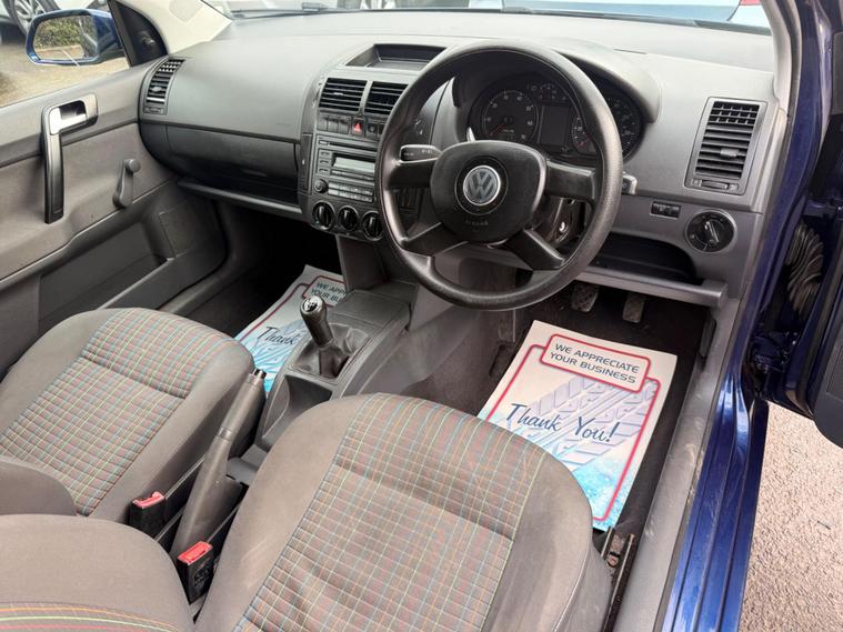 ? Volkswagen Polo 1.2 E 3dr ?? Year: 2005 (55)? Mileage: 85, 100?️ Service History with Stamps (84K)⛽️ Fuel Type: Petrol⚙️ Transmission: Manual ⚙️? Colour: Blue ?? Price: £1, 480? Spec: 14'' Wheel Trims, Two Tone Cloth Upholstery, 4 Spoke Steering Wheel, CD Player, Radio, Climate Control, Cupholder, ISOFIX, Head Restraints, Privacy Glass (Rear), Body Colour Wing Mirror Caps, Folding Rear Seats? Key Features & Highlights:? Economical 1.2 Litre Engine. Ideal for city commutes and long journeys, offering smooth and eco-friendly driving✅ ULEZ Compliant? 1 YEAR MOT: Drive worry-free with a valid MOT in place?️ Warranty Available: 3 Months, 6 Months or 12 Months Warranty Available (including Parts & Labour)? 12-Month AA Breakdown Cover: Feel Secure with extended roadside assistance? 5-Day AA Driveway Insurance Available: Get on the road hassle-free from day one (T&Cs Apply)? HPI Clear: Verified clean history for worry-free ownership? All Used Vehicle are Subject to a Documentation Fee? Same-Day Delivery or Handover: Quick & convenient service♻️ Part Exchange Welcome: Upgrade your current car with ease? All Mechanical Inspections [AA, RAC & Click Mechanic] Welcome? We aim to price our cars in line with their market value and mechanical / cosmetic conditionFor further details or to arrange a test drive please do not hesitate to give us a call and a friendly member of our sales team will be more than happy to help you.? Visit - dealer's website Contact Us on 01753293728 or 01753293728? Location: Crown Farm, Eton Wick Road, Windsor, SL4 6PG? Closest Train Station: Windsor & Eton Central⏰ 20 minutes’ drive from Heathrow Terminal 5? Easy access to M4 / M25.