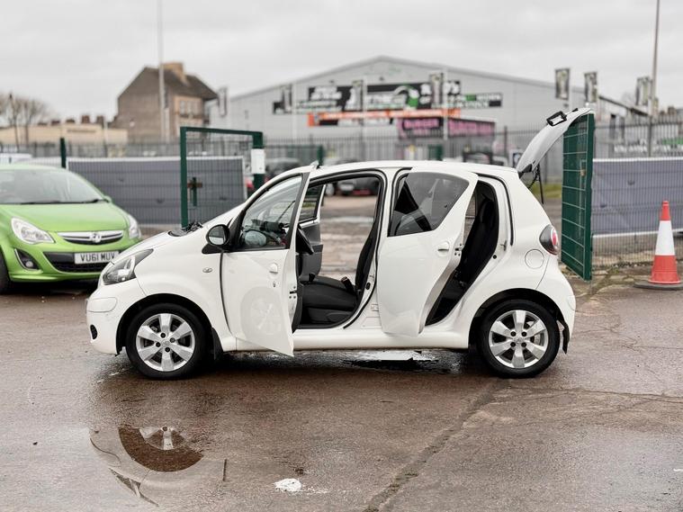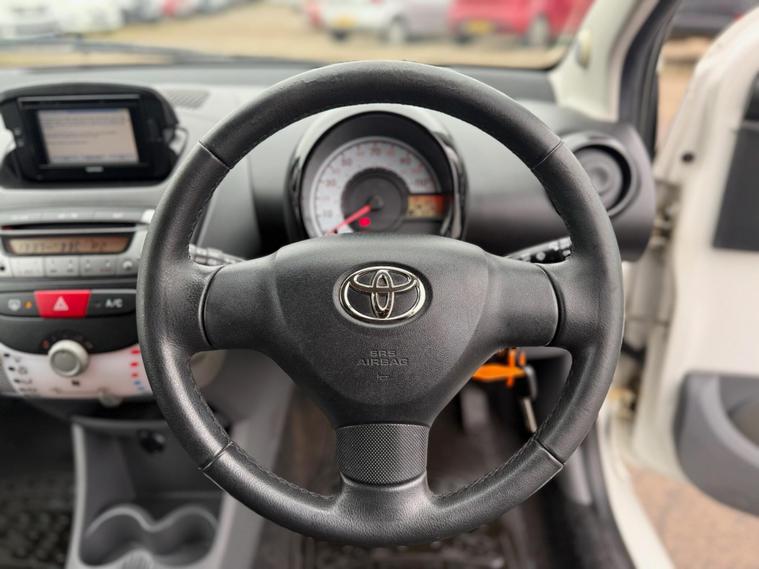 Excellent example of a very economical, reliable and easy-to-drive automatic hatchback. The 1.0 VVT-i petrol engine is well known for its durability and outstanding fuel efficiency, making this an ideal city car, first-time driver vehicle or low-cost daily commuter. Comes with 2 keys and remote central locking. Great specification including 14in 6-spoke alloy wheels, electric power steering (EPS) and ABS for a smooth and confident driving experience. Front electric windows add everyday convenience.Inside, the car is well equipped with a leather steering wheel and a highly desirable TomTom satellite navigation system, which can be used integrated or as a portable unit. The system also includes Bluetooth and USB connectivity. The radio/CD player with AUX input provides flexible media options.Air conditioning ensures comfort in all seasons, while the rear heated windscreen adds practicality. Also supplied with a spare wheel and ISOFIX child restraint system, making it a great small family option too.A dependable, cheap-to-run automatic that is always in demand thanks to Toyota’s legendary reliability and low running costs..