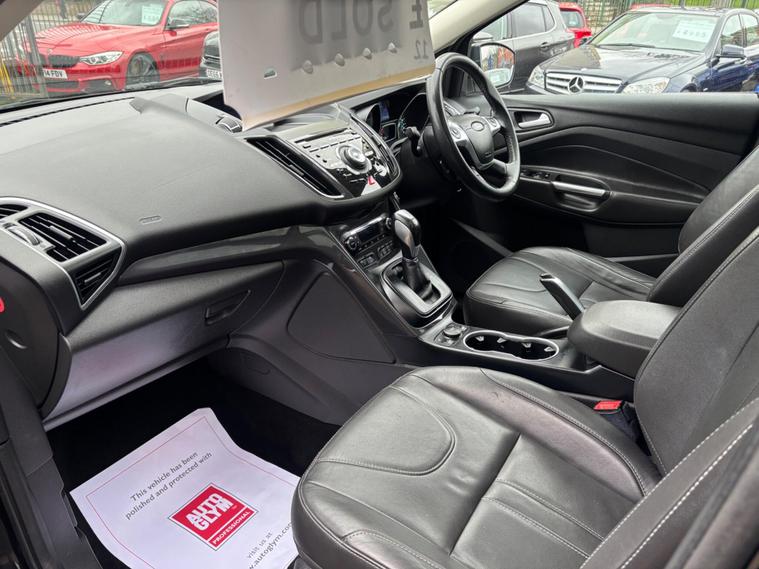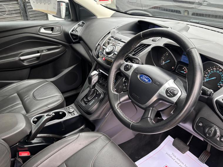 HERE WE HAVE ON SALE THE POPULAR FORD KUGA 2.0 TDCI TITANIUM X POWERSHIFT AWD FINISHED IN METALLIC dealer's website WITH HALF LEATHER SEATS, PANORAMIC ROOF, SATELLITE NAVIGATION, HEATED SEATS, FRONT AND REAR PARKING SENSORS WITH REVERSE CAMERA, HALF LEATHER HEATED SEATS, BLUETOOTH, CRUISE CONTROL WITH SPEED LIMITER, MULTIFUNCTIONAL STEERING WHEEL, ELECTRIC WINDOWS, ELECTRIC AND HEATED MIRRORS, HILL LAUNCH ASSIST, ISOFIX ATTACHMENT POINTS, SONY DAB RADIO WITH CD PLAYER AND 8 SPEAKERS, USB INPUT, REMOTE CENTRAL LOCKING X2 KEYS..............THIS VEHICLE BOASTS FULL SERVICE HISTORY CONSISTING FROM 9218 MILES, 17533 MILES, 24557 MILES, 33984 MILES, 39807 MILES, 44715 MILES, 55084 MILES, 68400 MILES AND 77365 MILES MEANING THIS VEHICLE HAS BEEN MAINTAINED TO A VERY HIGH STANDARD.............JUST BEEN SERVICED & HAS A BRAND NEW 12 MONTHS MOT..............TWO FORMER KEEPERS...........THIS VEHICLE PRESENTS IN EXCELLENT CONDITION THROUGHOUT AND DRIVES LIKEWISE............VIEWING ESSENTIAL................FINANCE AVAILABLE ON REQUEST.