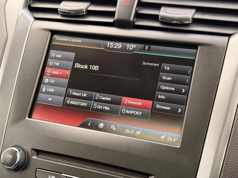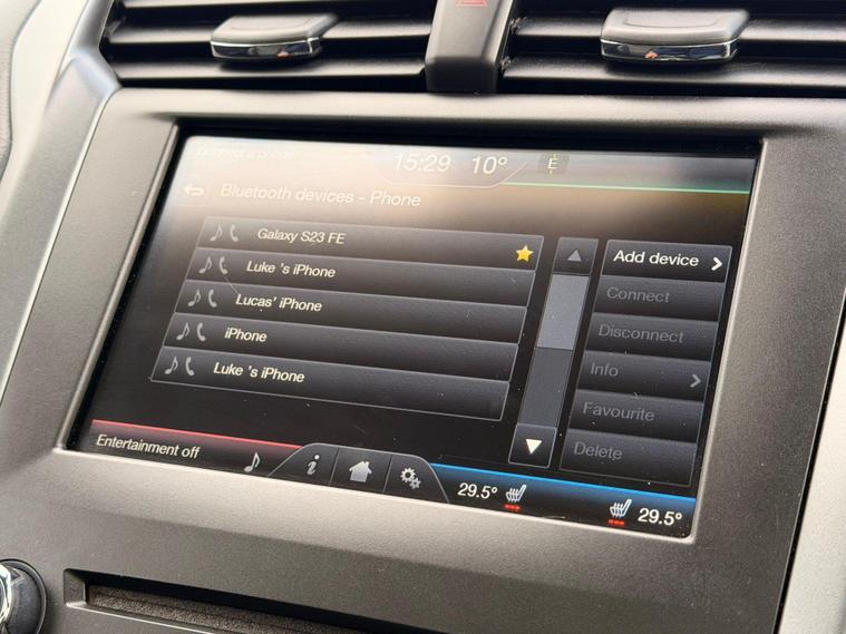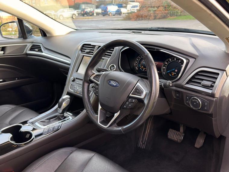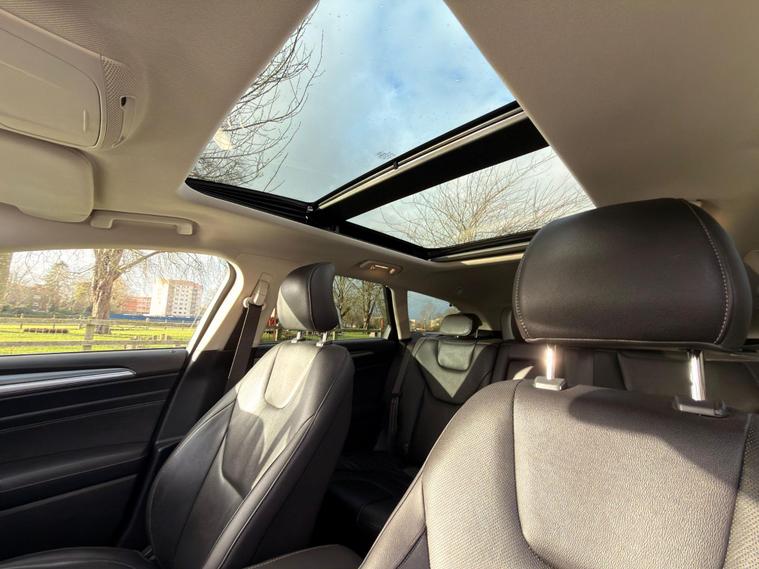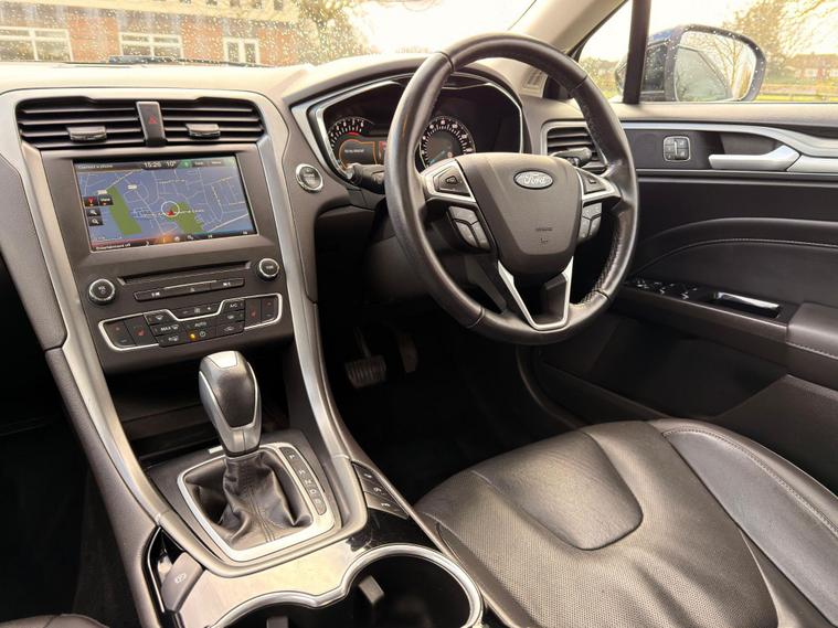 TOP SPEC, EVERY OPTIONAL EXTRA IN THE BOOK, PANORAMIC SLIDING AND TILTING SUNROOF, CAMERA, SATTELITE NAVIGATION, FULL BLACK LEATHER INTERION WITH MEMORY, HEATED SEATS, HEATED STEERING WHEEL, PARKING SENSORS, PARK ASSIST, LANE ASSIST BLING SPOT, 2 KEYS, KEYLESS ENTRY AND KEYLESS GO, This 2015 Ford Mondeo T Titanium presents an exceptional opportunity with its remarkably low mileage of just 36, 755 miles. This Euro 6 compliant 1.5 litre petrol model offers a refined driving experience, enhanced by its Titanium trim. You'll appreciate the convenience of automatic headlights, which illuminate automatically when needed, and the comfort provided by dual zone electronic automatic temperature control for the air conditioning. For rear passengers, there is also independent rear air conditioning, ensuring everyone stays comfortable.Further enhancing this Mondeo's appeal are its integrated Bluetooth handsfree phone system and audio streaming capabilities, allowing for seamless connectivity on the go. These features, combined with the low mileage and desirable Titanium specification, position this Ford Mondeo as a standout choice compared to other vehicles of its age and class. It offers a well equipped and comfortable journey for all occupants..