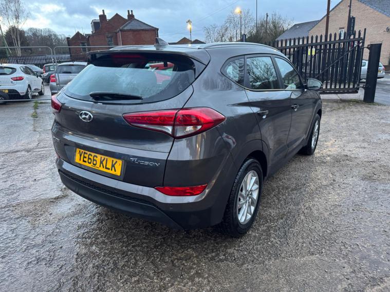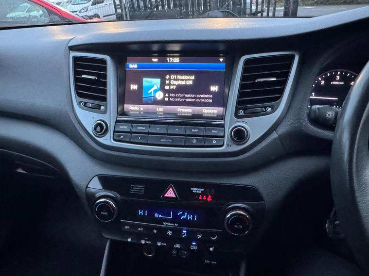 This 2016 Hyundai TUCSON CRDi SE Nav offers excellent value with only two previous owners. This stylish SUV is equipped with a 1.7 litre diesel engine, meeting Euro 6 emission standards. Inside, you'll find comfortable heated front seats, dual zone climate control with ioniser, and an 8 inch touchscreen satellite navigation system complete with a reversing camera and live traffic services. For convenience, it also features automatic headlights that activate at dusk and rear parking sensors to assist with manoeuvring.This TUCSON SE Nav is designed to be economical and practical. It boasts an impressive fuel economy of up to 62 miles per gallon, making it an efficient choice for both city driving and longer journeys. Its low CO2 emissions further contribute to its cost effectiveness. You'll also appreciate the generous boot space, perfect for carrying luggage or shopping. Furthermore, this model falls into a low insurance group, which can help to keep your running costs down..