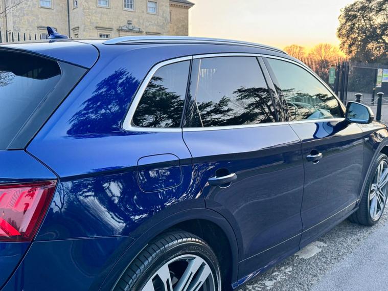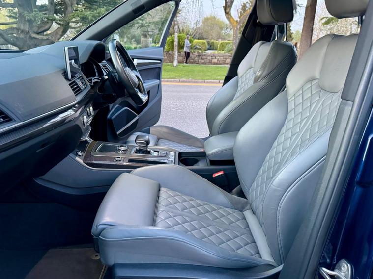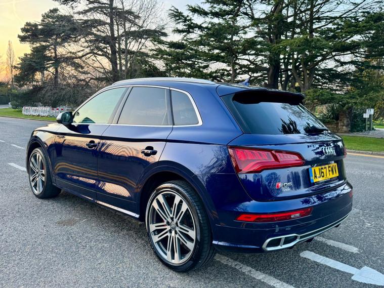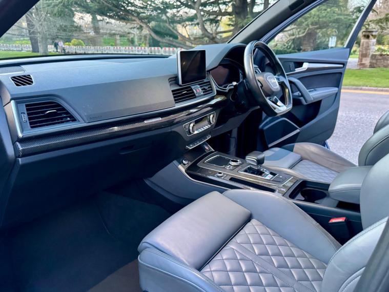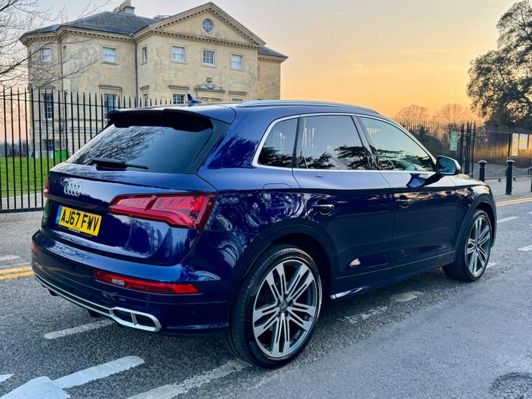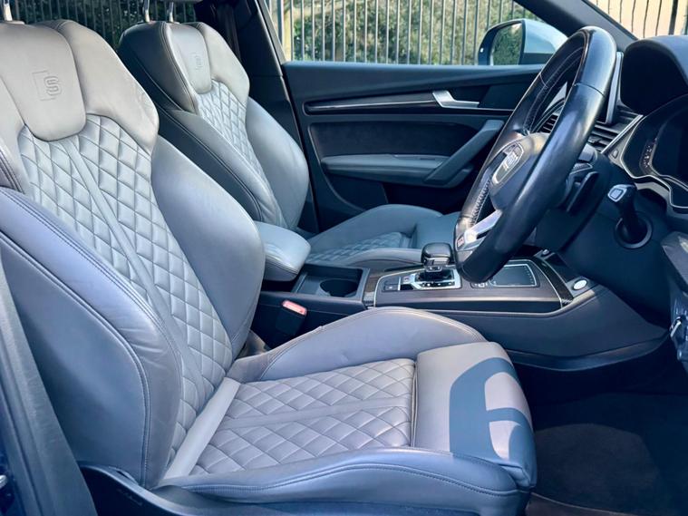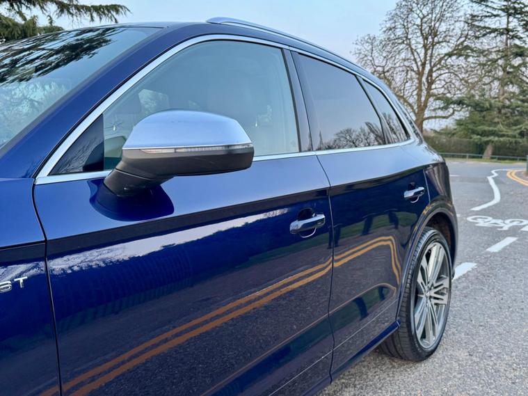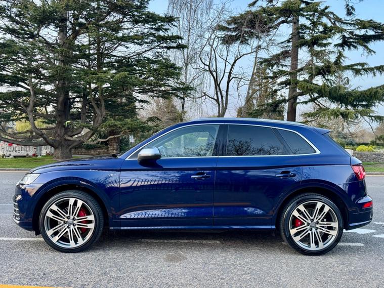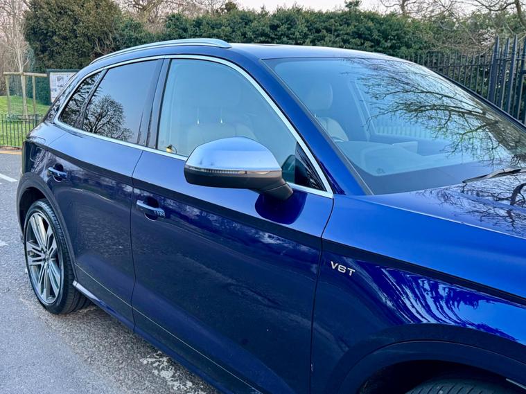 This 2018 Audi SQ5 TFSI V6 boasts a full service history, ensuring its excellent provenance. This impressive SUV is equipped with a powerful 3.0 litre petrol engine and Four Wheel Drive, making it a capable performer. It meets Euro 6 emission standards and offers a substantial towing weight of 2400 kg. For your peace of mind, a 12 month MOT will be provided upon purchase. Inside, you'll find Deluxe 3-Zone Climate Control for all occupants, along with heated front seats for added comfort. The striking LED headlights with their signature Q design, complemented by LED rear lights and dynamic rear indicators, enhance visibility and the vehicle's distinctive look. Connectivity is made easy with the Bluetooth interface, and parking is simplified thanks to the Audi Parking System Plus, which includes front and rear sensors.The Audi SQ5 stands out with its remarkable acceleration, reaching 0-62mph in just 5.4 seconds, demonstrating its dynamic capabilities. This performance, combined with its large boot space, indicates how this vehicle offers a superior driving and practical experience compared to similar models. Furthermore, its placement in a low insurance group makes it an economical choice for many drivers..