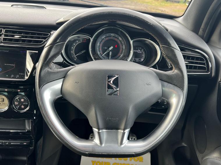This 2016 DS 3 PureTech Prestige offers an exceptional blend of style and efficiency, boasting a remarkable 63 miles per gallon. This Euro 6 compliant 1.2 litre petrol model comes in the well appointed Prestige trim, featuring DS LED Vision with Xenon headlights for superior illumination. Inside, you'll find automatic air conditioning for comfort, and for convenience, Bluetooth handsfree and media streaming with a USB socket, alongside front and rear parking sensors to assist with manoeuvring.Experience impressive performance with a swift 0 to 62 miles per hour acceleration in just 8.9 seconds, all while benefiting from low CO2 emissions. These highlights demonstrate how this DS 3 stands out from other vehicles in its class, offering a refined driving experience with excellent running costs and a host of desirable features..