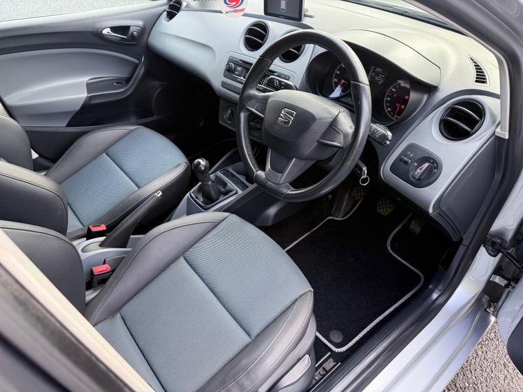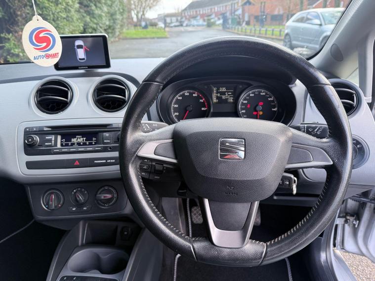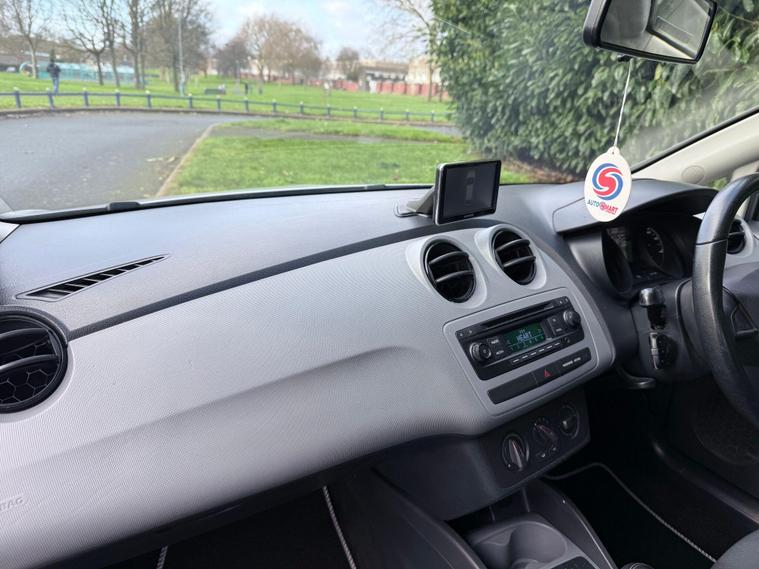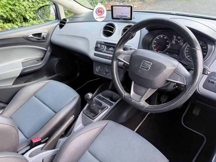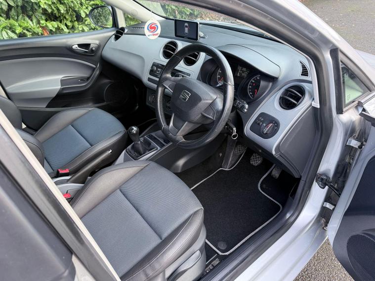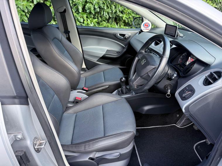 We are proud to offer this fantastic Seat Ibiza finished in silver metallic paint with contrasting black wheels This is a very well equipped car with the likes of Satnav with bluetooth connectivity for calls and music, remote central locking, Hill start/hold assist, air conditioning, leather steering wheel, half leather seats, electric front windows. This is a 3 owner car with 2 keys and full Seat service history, condition is excellent all round. We have just carried out a full service on this car along with fitting a NEW TIMING CHAIN KIT to ensure the new owner will have no upcoming expenses. Condition is excellent all round, Powered by the non turbo 1.2 litre petrol engine with an Insurance group 5 rating mean that this would make for a great first car for a new driver, for additional peace of mind this Ibiza will leave us with a full 12 months MOT..