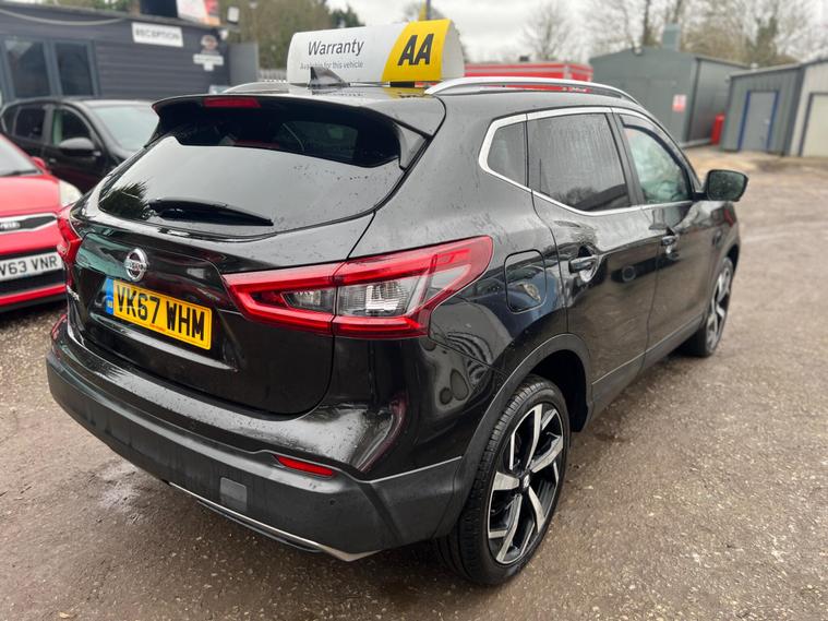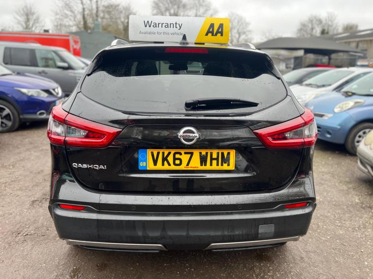 This 2017 Nissan Qashqai dCi Tekna is a well maintained example, offering a blend of style and practicality. Powered by an efficient 1.6 litre diesel engine, this Euro 6 compliant model boasts impressive fuel economy, achieving up to 60 miles per gallon. The Tekna trim level comes generously equipped, and this particular vehicle benefits from the desirable Glass Roof Pack, which includes a fixed panoramic sunroof, allowing natural light to flood the cabin. Further enhancing comfort and convenience are the heated seats from the Executive Pack and the integrated Bluetooth system for seamless phone connectivity.Driving and parking are made easier with the Smart Vision Pack, featuring front and rear parking sensors, complemented by a rear view camera for added confidence. This Qashqai also sits in a low insurance group, making it an economical choice for many drivers. Its low CO2 emissions further contribute to its cost effectiveness and environmental consideration. These highlights demonstrate how this Nissan Qashqai offers a superior ownership experience compared to other vehicles in its class..