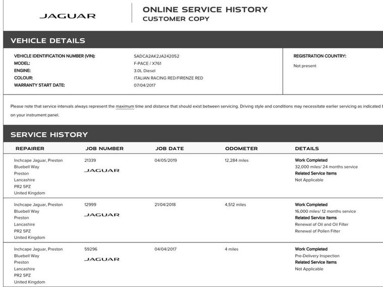 SLIDING OPEN PANORAMIC ROOFCAM BELT DONE BY JAGUARSIDE STEPS2 KEYSBoasting exceptionally low mileage for its age, this 2017 Jaguar F-PACE D300 V6 Portfolio presents a remarkable opportunity. With only 39, 600 miles on the clock and a clear vehicle history check, this Four Wheel Drive model is in excellent condition. Its Euro 6 compliant 3.0 litre diesel engine offers a powerful yet efficient drive, complemented by a full service history . The Portfolio trim level ensures a premium experience, featuring Adaptive LED Headlights with LED Signature Daytime Running Lights, a Sliding Panoramic Roof for an airy cabin, and a 360 Degree Parking Aid with a comprehensive camera system to make manoeuvring effortless. It also comes equipped with stylish 19 inch alloy wheels in both Silver and Grey Diamond Turned finishes.This Jaguar F-PACE stands out with its impressive performance, achieving 0-60mph in a swift 5.8 seconds, demonstrating its dynamic capabilities. The large boot space offers practicality for everyday needs and longer journeys, while its low insurance group rating adds to its overall value. Furthermore, with a substantial towing weight of 2400 kg, this F-PACE is well equipped for a variety of tasks, making it a versatile and desirable choice..