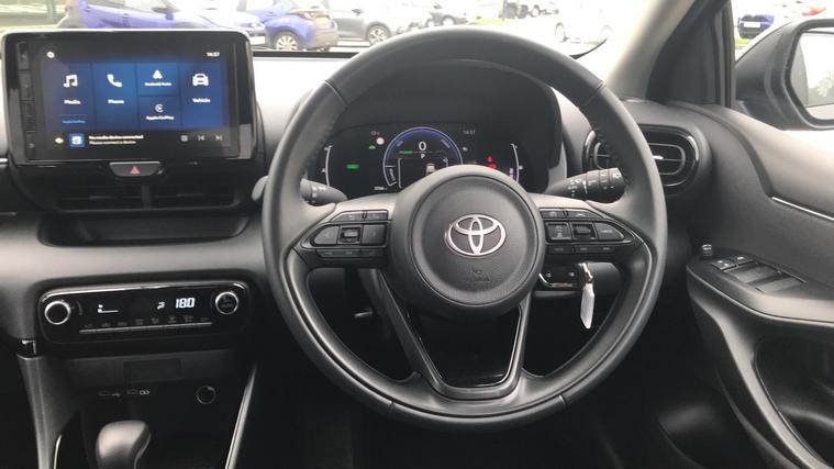 This 2025 Toyota Yaris VVT-h Design presents an exceptional ownership proposition with its remarkably low mileage of just 2700 miles, a testament to its single owner and full service history. As a Toyota manufacturer approved vehicle, it benefits from a 12 month warranty, offering peace of mind. This Euro 6 compliant model features a 1.5L petrol hybrid engine, contributing to its low CO2 emissions. The Design trim level ensures a well equipped experience, enhanced by notable features such as Bluetooth connectivity, adaptive cruise control for effortless journeys, and a reversing camera for confident parking.Further enhancing your driving experience, this Yaris includes automatic headlights and seamless smartphone integration with Apple CarPlay and Android Auto, keeping you connected and informed on the go. The low CO2 emissions highlight how this vehicle is more environmentally conscious than many others in its class. With its combination of advanced technology, efficient hybrid power, and excellent provenance, this Toyota Yaris represents a smart and practical choice for any driver..