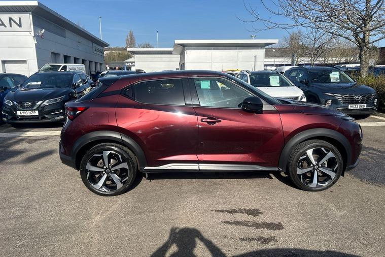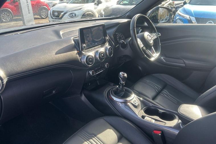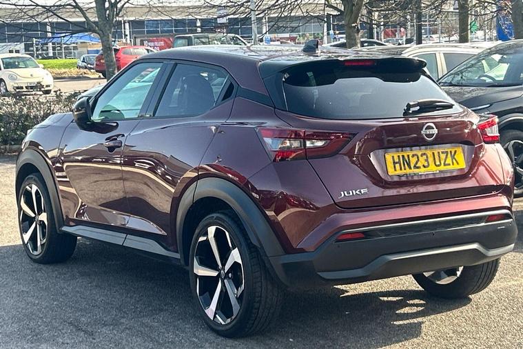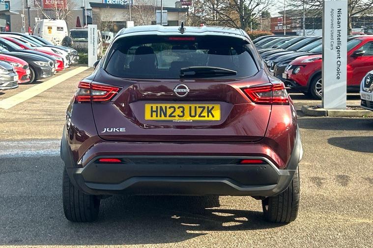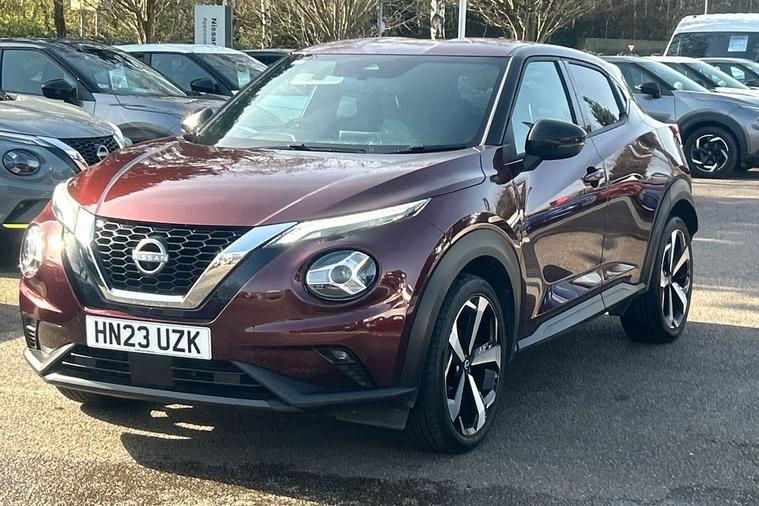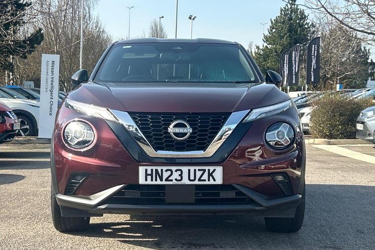 This 2023 Nissan Juke DIG-T Tekna is a Nissan manufacturer approved vehicle, offering peace of mind with its proven quality. This stylish hatchback features a 1.0 litre petrol engine and meets Euro 6 emission standards. It comes equipped with the convenience of Apple CarPlay and Google Android Auto, allowing seamless integration of your smartphone. The Intelligent Key system, complete with a push button start, offers walk away lock and approach unlock functions for effortless access.With an impressive fuel economy of 48 miles per gallon, this Juke DIG-T Tekna is designed to be economical for your journeys. Its low CO2 emissions also highlight its efficiency compared to other vehicles in its class. This combination of advanced technology, practical features, and strong environmental credentials makes the 2023 Nissan Juke DIG-T Tekna a compelling choice..