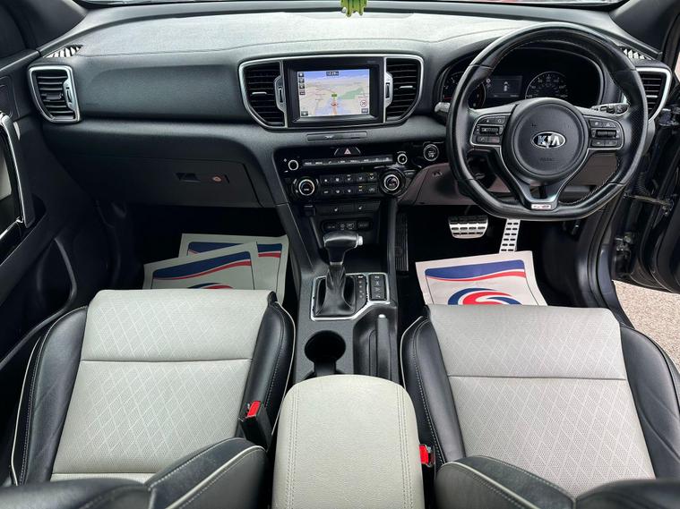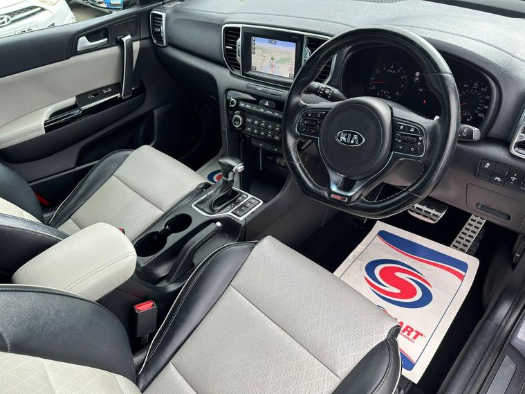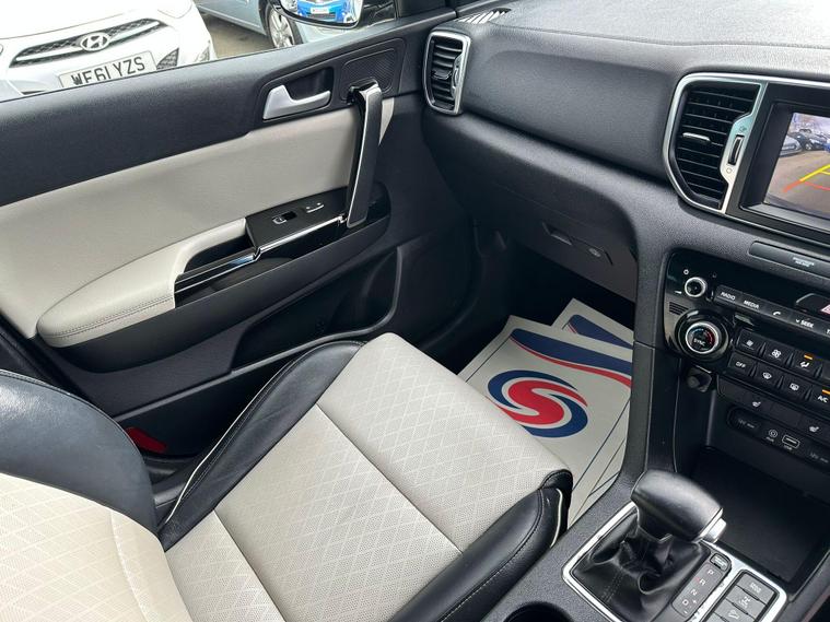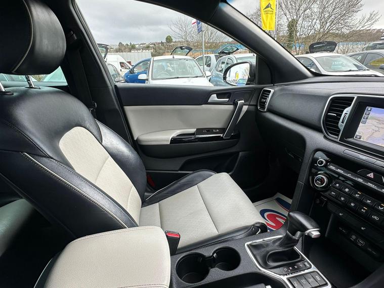 This 2017 Kia Sportage T GDi GT Line offers a compelling blend of style and practicality, boasting a robust 1.6 litre petrol engine paired with a capable four wheel drive system. As a Euro 6 compliant vehicle, it meets modern emissions standards. Inside, you'll find a comfortable and convenient cabin featuring dual automatic air conditioning with an ioniser for climate control, automatic headlights for enhanced visibility, and Bluetooth connectivity for seamless music streaming. The smart key entry system allows for effortless access, and for added comfort, the outer rear seats are heated.This Sportage stands out with its impressive acceleration, reaching 0 to 60 miles per hour in just 8.8 seconds, demonstrating its responsive performance. Its large boot space provides ample room for luggage or shopping, making it a versatile choice for families and individuals alike. Furthermore, its placement in a low insurance group indicates that running costs are kept to a minimum, offering excellent value compared to many other vehicles in its class..