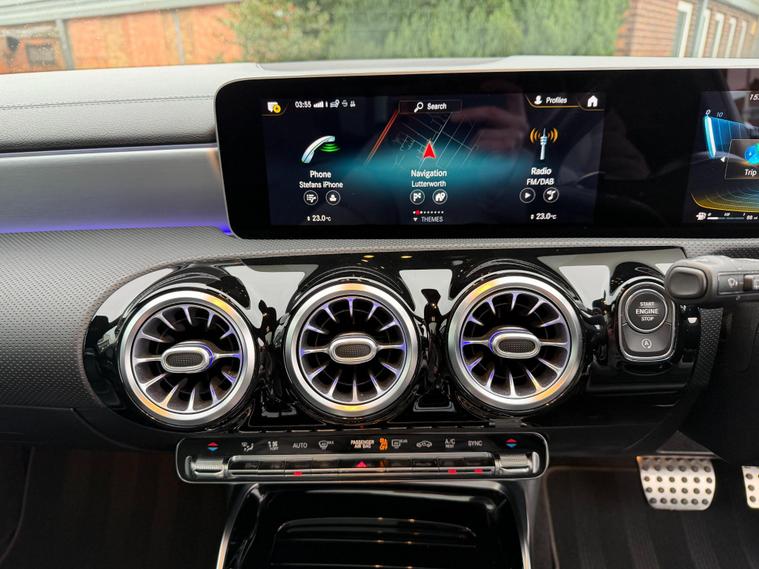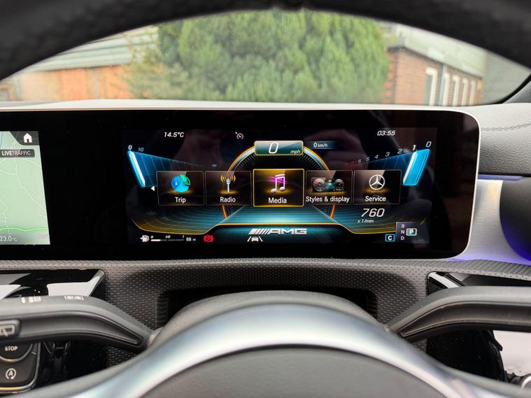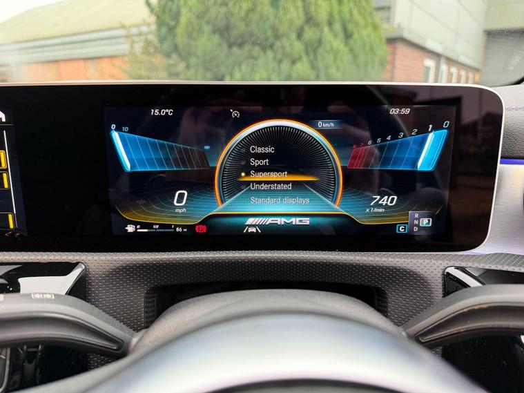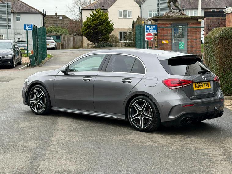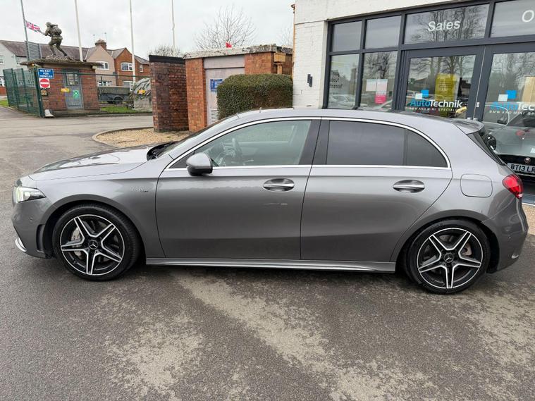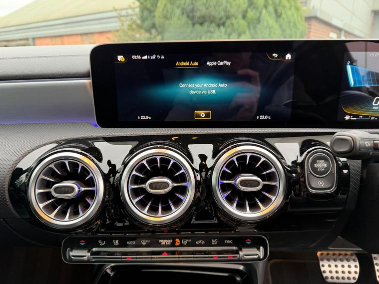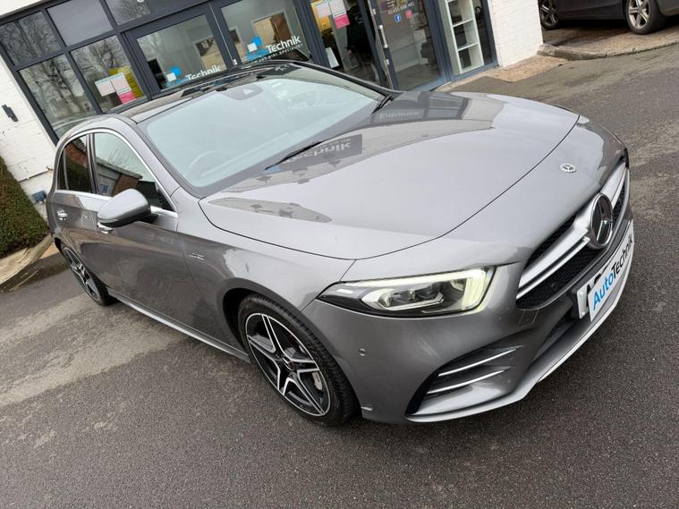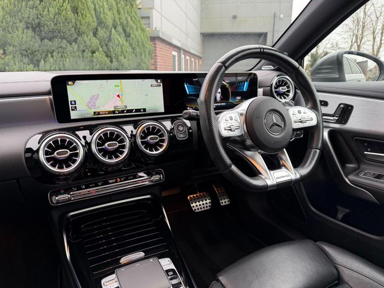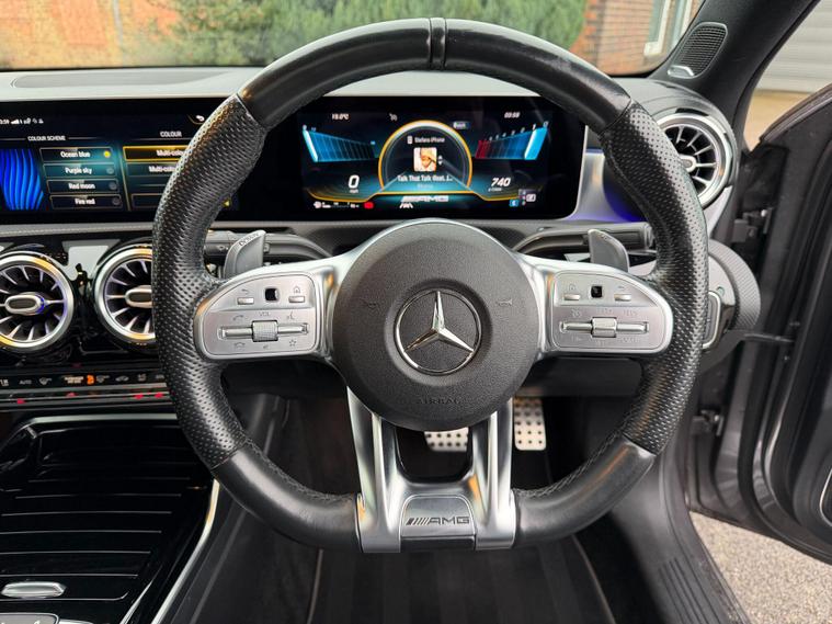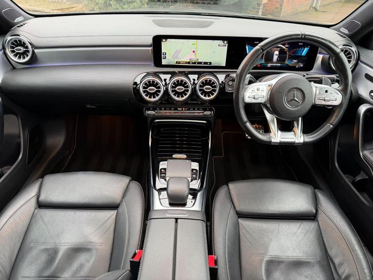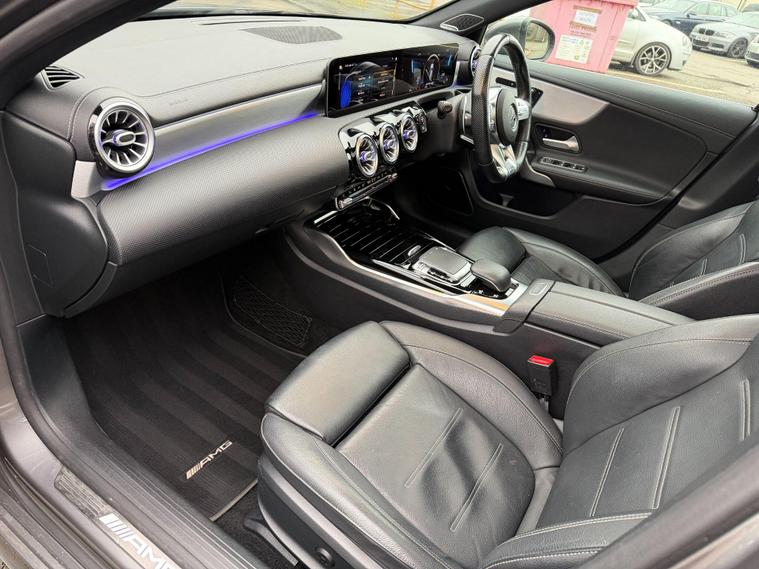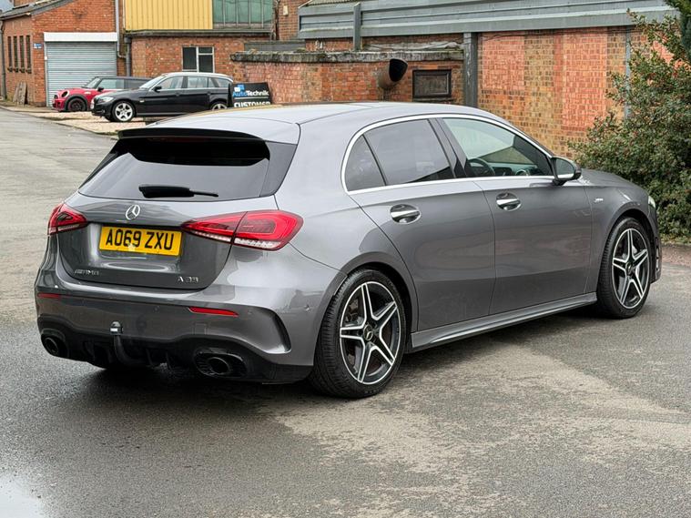 This 2020 Mercedes Benz A Class A35 AMG Premium Plus is a superb example of performance and luxury. Powered by a potent 2.0 litre petrol engine and featuring a four wheel drive system, this Euro 6 compliant model offers exhilarating acceleration, reaching 0-62mph in just 4.7 seconds. The AMG trim ensures a sporty aesthetic and driving experience, complemented by a suite of advanced technology.This A35 AMG is equipped with a comprehensive Driving Assistance Package, including Blind Spot Assistance and Adaptive Cruise Control, enhancing safety and comfort on every journey. The Advanced Connectivity Package brings seamless integration with Android Auto and Apple CarPlay, alongside convenient wireless phone charging. Furthermore, the AMG Advanced Navigation Package with a Head Up Display and a 180 degree reversing camera with parking assistance make manoeuvring effortless. With dual Bluetooth interfaces, two USB Type C ports, and generous boot space, this Mercedes Benz A Class is designed for both dynamic driving and everyday practicality..