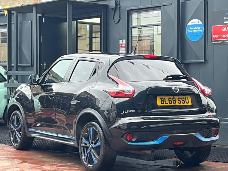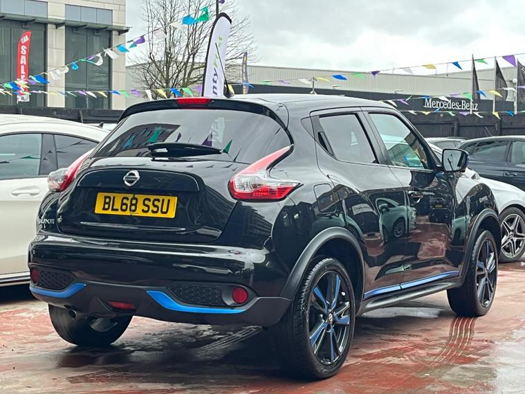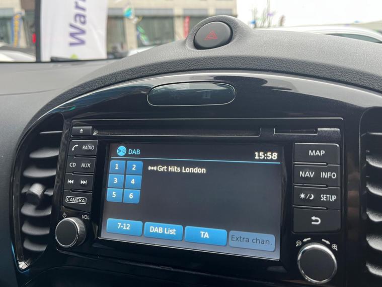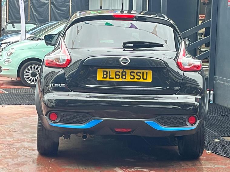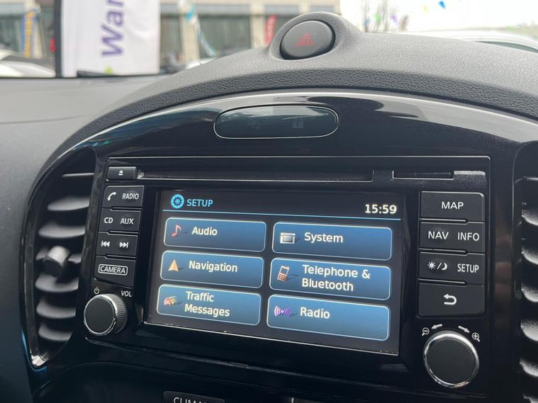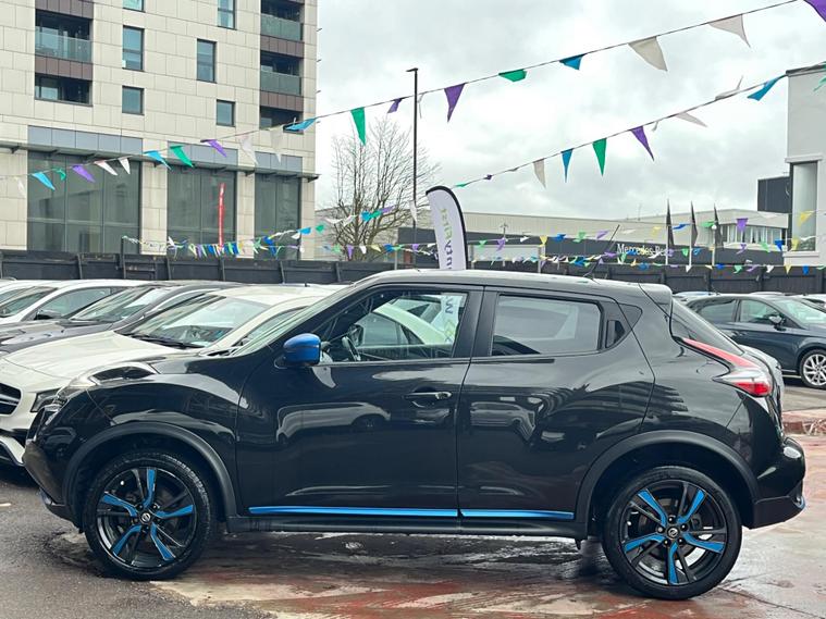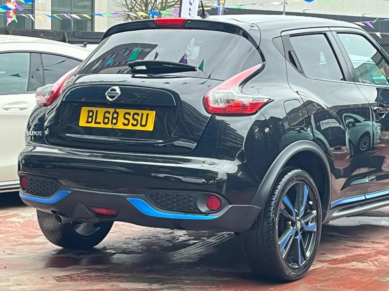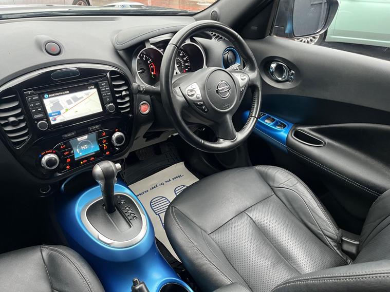 SELECT MOTORS (GB) DELIGHTED TO OFFER YOU THIS STUNNING NISSAN JUKE 1.6 TEKNA 5DR IN BLACK COLOUR AND COMPLEMENTED WITH 17IN DESIGN ALLOY WHEELS. THIS VEHICLE HAS A HUGE SPECIFICATION WHICH INCLUDES THE FOLLOWING; SATELLITE NAVIGATION SYSTEM, 360 DEGREE VIEW CAMERA, BLUETOOTH CONNECTIVITY FOR PHONE AND MEDIA, DAB-FM/AM RADIO, CRUISE CONTROL WITH SPEED LIMITER, FRONT HEATED SEATS, AUX SOCKET FOR MP3 PLAYER, AUTOMATIC CLIMATE CONTROL, LED DAYTIME RUNNING LIGHTS, TYRE PRESSURE WARNING SYSTEM. THIS VEHICLE IS ULEZ EXEMPT. WE ARE OFFERING NATIONWIDE DELIVERY ON ALL VEHICLE (PLEASE GET IN TOUCH DIRECTLY FOR DETAILS). WE CAN ALSO CONDUCT VIRTUAL VIEWINGS AND ACCOMMODATE ANY REQUESTS YOU MAY HAVE. ALL OUR ADVERTISED STOCK IS TEST-DRIVEN, INSPECTED BY OUR MECHANIC TO MAKE SURE OUR CUSTOMERS DRIVE AWAY WITH THE BEST QUALITY CARS. WE CAN PROVIDE A VIDEO WALK AROUND THIS VEHICLE UPON REQUEST., ALL OF OUR VEHICLES ARE SUPPLIED WITH A 3 MONTHS WARRANTY WITH EXTENDED OPTION. 12 MONTHS FREE AA BREAKDOWN COVER. FINANCE AVAILABLE..
