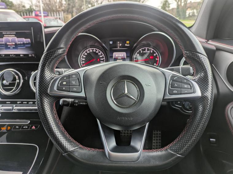 - Steering Wheel - 3-Spoke Multi-function Sports in Black Leather with Flattened Bottom Section - Deep Embossing in Grip Area and Red Contrasting Topstitching