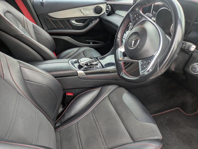 - Floor Mats - with Black Leather Edging - Red Piping - AMG Logo