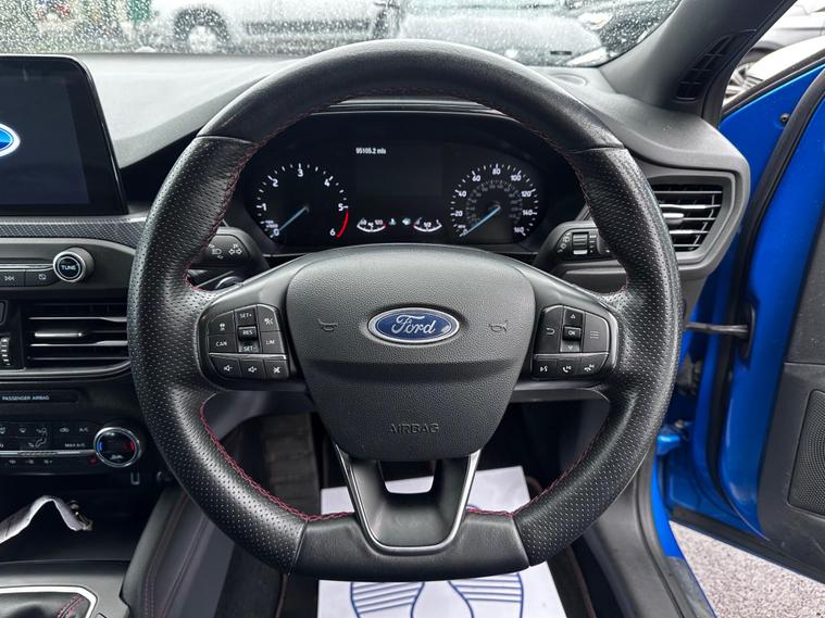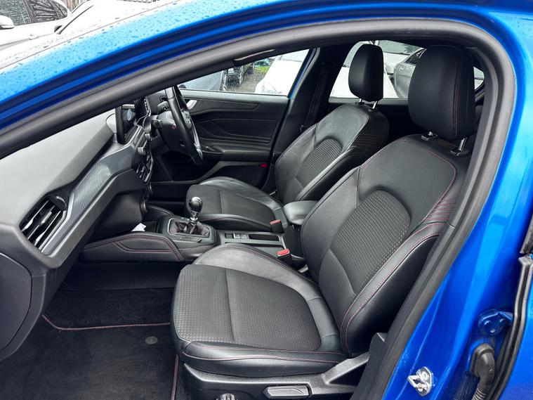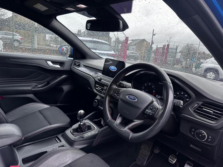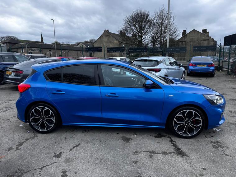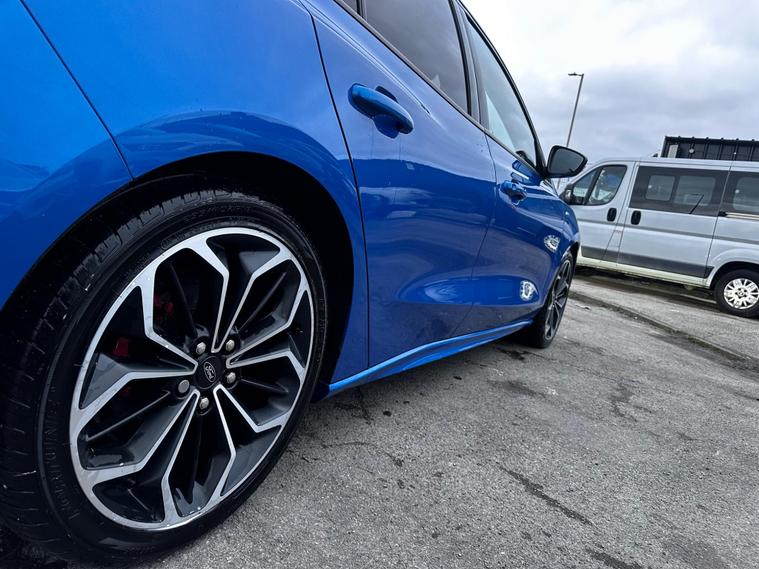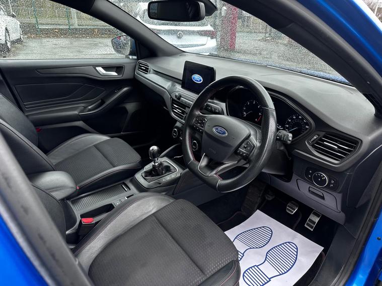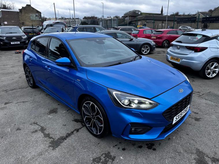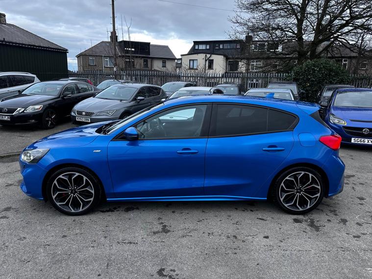 Turn heads and enjoy the perfect balance of sporty styling and outstanding efficiency with this 2019 Ford Focus 1.5 EcoBlue ST-Line X finished in stunning blue, a modern hatchback designed to impress. Powered by a responsive 1.5-litre EcoBlue diesel engine producing around 118bhp, it delivers smooth performance while achieving an excellent up to 64mpg combined, keeping running costs impressively low. The ST-Line X model comes packed with premium features including satellite navigation, heated sports seats, dual-zone climate control, 18-inch alloy wheels, front and rear parking sensors, cruise control, dual-zone climate control, lane assist and lane keeping aid, Bluetooth media and telephone, Electronic parking brake, emergency brake assist, hill start assist, LED daytime running lights, power folding door mirrors, rain sensing wipers, pre-collision assist with pedestrian detection, QuickClear heated windscreen, selectable drive mode select, red brake calipers, steering wheel- 3-spoke leather-flat bottom-red stitched, privacy glass and a large touchscreen infotainment system, all wrapped in a sporty body kit with distinctive styling and sports suspension. With its comfortable interior, sharp handling, and practical design, this Focus is perfect for commuters, families, or anyone wanting a stylish and economical car with real road presence. Don’t miss your chance to own this high-spec, eye-catching example—enquire today and drive away in one of Ford’s most desirable models. This vehicle is in great condition and comes with 2 keys, full service history and is HPI Clear! This vehicle comes with 6 months warranty, 12 Months MOT and 12 Months AA Breakdown Cover, part exchange is welcome, finance packages are also available. Deliveries are also available on trade prices.For further information you can contact us via email, messages or give us a call via the numbers or email below:01274914032 hnsmotors7 dealer's website