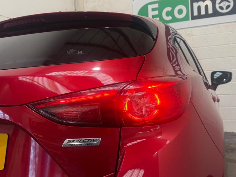 This 2015 Mazda Mazda3 SKYACTIV-G SE-L Nav offers a compelling blend of style and practicality. Powered by a responsive 2.0 litre petrol engine, this SE-L Nav trim level comes equipped with a suite of desirable features. You'll appreciate the convenience of rear parking sensors to assist with manoeuvring, and dual zone climate control for personalised comfort. The dusk sensing automatic headlights ensure optimal visibility, while the front seats are heated for those colder journeys. Further enhancing the driving experience are Bi-Xenon headlights, providing excellent illumination.This Mazda3 stands out with its impressive acceleration, reaching 0-62mph in just 8.9 seconds, demonstrating its lively performance. Its low insurance group rating means more affordable motoring, and the generous boot space provides ample room for luggage or shopping, making it a versatile choice for everyday use and longer trips. These attributes collectively indicate how this Mazda3 offers a superior ownership proposition compared to other vehicles in its class..