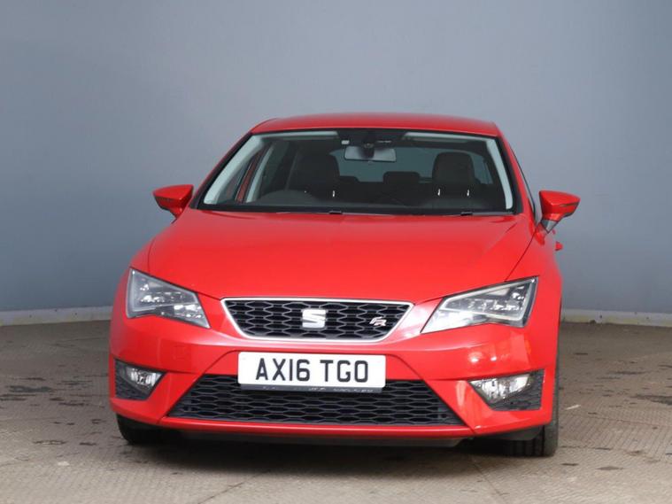 - Steering Wheel - Flat-Bottomed Perforated Leather with Red Stitching and FR Logo