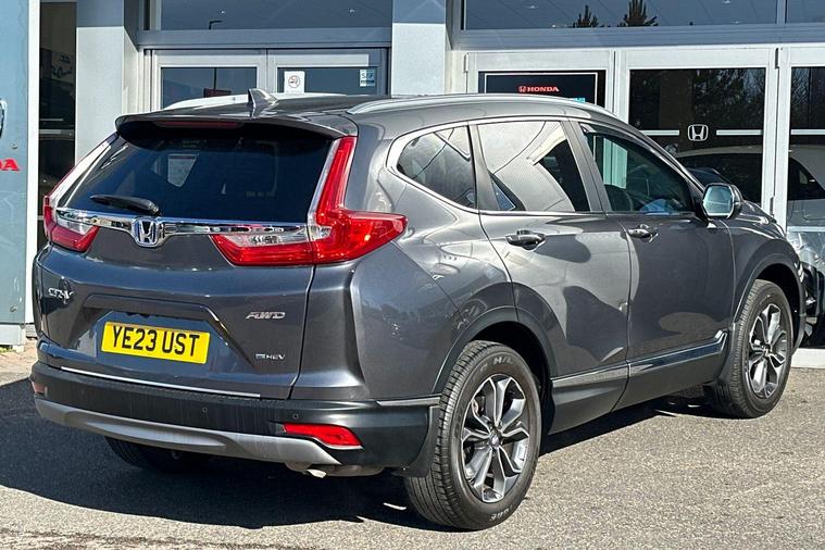This 2023 Honda CR-V h i-MMD EX presents an exceptional ownership proposition with its remarkably low mileage of just 18159 miles, a testament to its careful single owner. This Euro 6 compliant, four wheel drive model boasts a sophisticated 2.0 litre petrol hybrid engine, offering an efficient and responsive driving experience. The EX trim level ensures a wealth of desirable features, including integrated Bluetooth Hands Free Telephone for seamless connectivity, automatic headlights for convenience and safety, and a heated steering wheel for added comfort during colder journeys.Further enhancing the practicality and comfort of this CR-V are its dual zone climate control for personalised cabin temperatures and an advanced blind spot information system that includes a cross traffic monitor, providing an extra layer of awareness on the road. The generous boot space is a standout feature, making it ideal for families, shopping trips, or weekend getaways. These combined attributes, from its low mileage and single owner history to its comprehensive feature set and ample storage, position this Honda CR-V as a superior choice compared to other vehicles in its class..