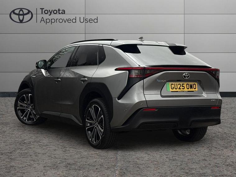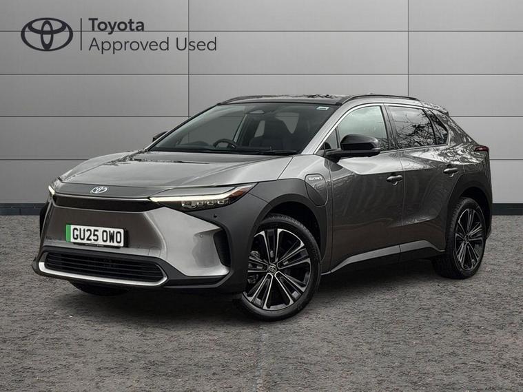 This 2025 Toyota bZ4X Vision is a Toyota manufacturer approved electric vehicle with a full service history, having only had one owner and its last service completed on 2026-02-04 at 9011 miles. This Four Wheel Drive model boasts a 71 kWh battery offering a maximum range of 260 miles, with a full charge at home taking approximately 9 hours and 10 minutes using a 7kW charger. For faster charging, it can reach 80% from empty in just 34 minutes at a public charging station. The MOT is valid until March 2028, and the vehicle comes with a 25 month warranty. Notable features include the expansive Toyota Skyview Panoramic Roof, Intelligent Adaptive Cruise Control, a Wireless Mobile Phone Charger, LED Headlights, and Dual-Zone Automatic Air Conditioning.The Toyota bZ4X Vision offers an impressive 0-62mph acceleration time of just 6.9 seconds, demonstrating its responsive performance. This acceleration is a key indicator of how this vehicle outperforms many others in its class, providing a more dynamic driving experience. The combination of its electric drivetrain, Four Wheel Drive capability, and advanced features ensures a refined and efficient journey..