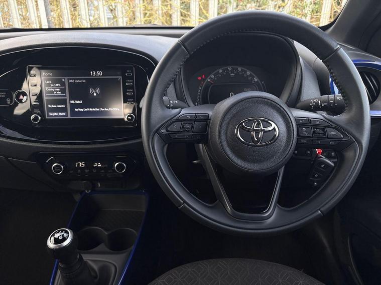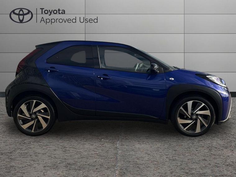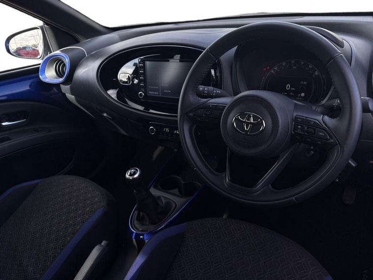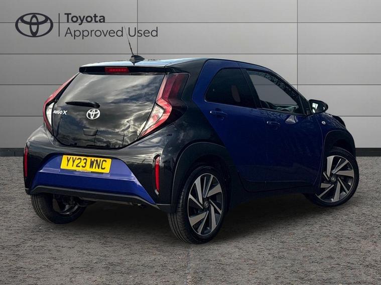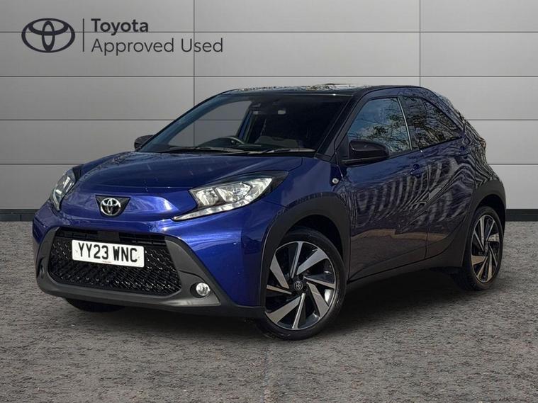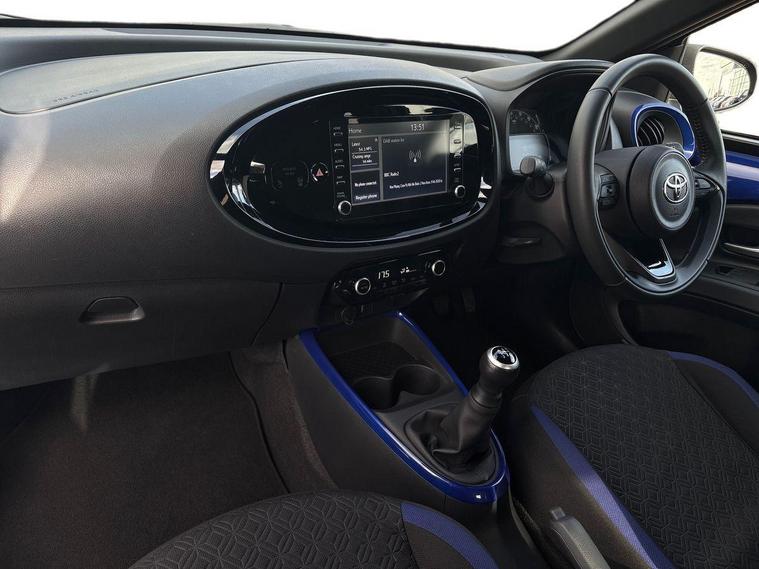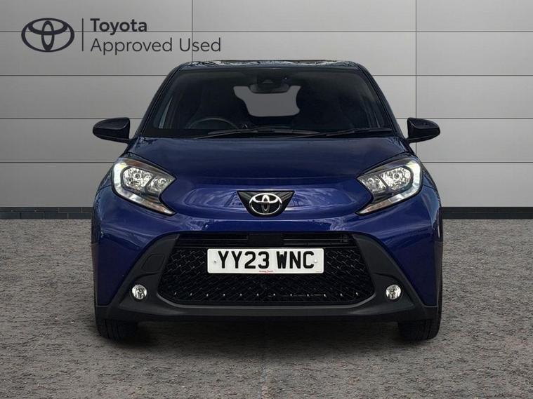 This 2023 Toyota Aygo X VVT-i Edge boasts a full Toyota manufacturer approval and a recent service in October 2025 at 18, 670 miles, ensuring excellent provenance. This stylish Edge trim model is powered by an efficient 1.0L Euro 6 petrol engine and comes with a 12 month warranty for your peace of mind. Its MOT is valid until July 2026. Notable features include Bluetooth connectivity for seamless calls and music, and Toyota Safety Sense which incorporates intelligent adaptive cruise control, easily managed via the steering wheel. For added convenience and safety, it also features auto headlights and a reversing camera with parking assistance.The Aygo X VVT-i Edge stands out with its impressive fuel economy, achieving a highlight of 59 mpg, which indicates it is more economical than many similar vehicles. Furthermore, its low insurance group and low CO2 emissions highlight its cost effectiveness and environmental consideration compared to other cars in its class..