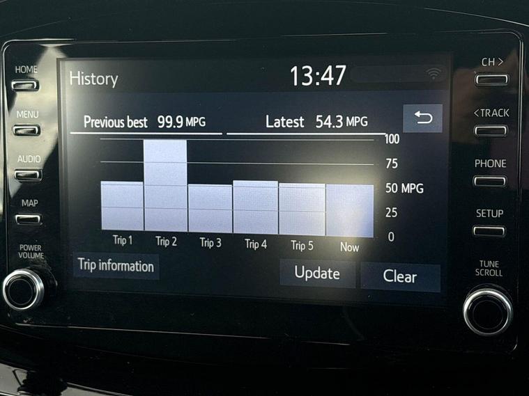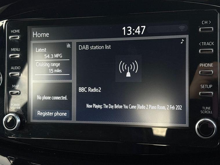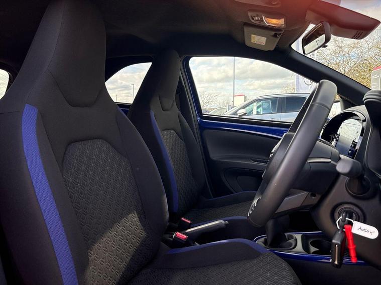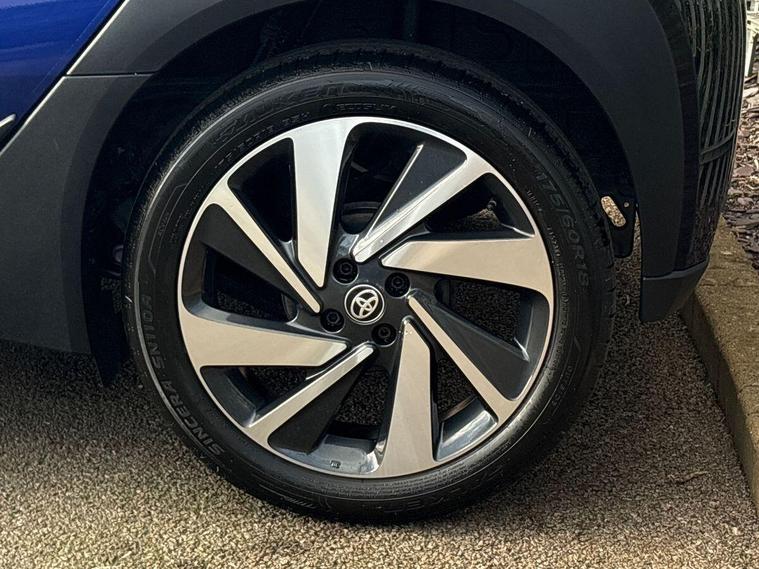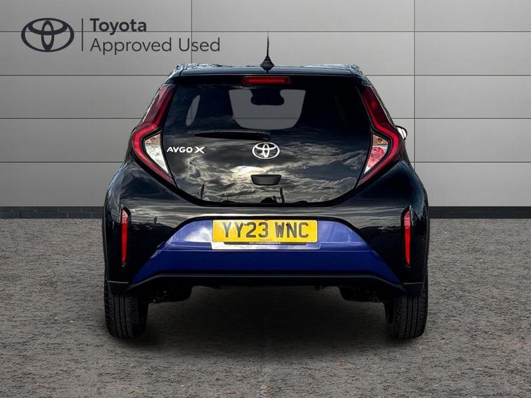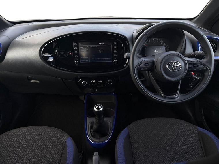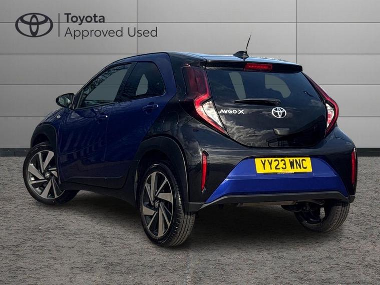 This 2023 Toyota Aygo X VVT-i Edge boasts a full Toyota manufacturer approval and a recent service in October 2025 at 18, 670 miles, ensuring excellent provenance. This stylish Edge trim model is powered by an efficient 1.0L Euro 6 petrol engine and comes with a 12 month warranty for your peace of mind. Its MOT is valid until July 2026. Notable features include Bluetooth connectivity for seamless calls and music, and Toyota Safety Sense which incorporates intelligent adaptive cruise control, easily managed via the steering wheel. For added convenience and safety, it also features auto headlights and a reversing camera with parking assistance.The Aygo X VVT-i Edge stands out with its impressive fuel economy, achieving a highlight of 59 mpg, which indicates it is more economical than many similar vehicles. Furthermore, its low insurance group and low CO2 emissions highlight its cost effectiveness and environmental consideration compared to other cars in its class..