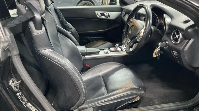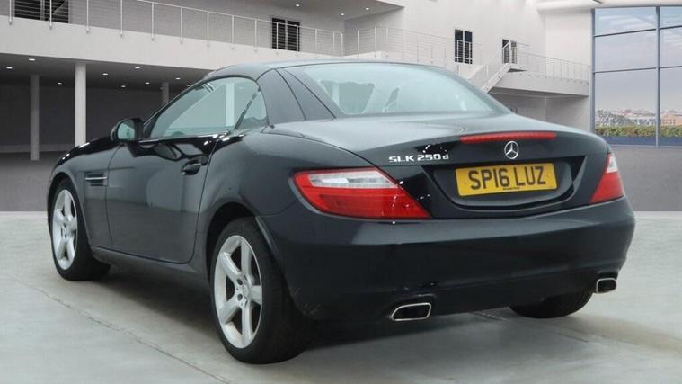 A BETTER SET OF 45 PHOTOS AS SOON AS IT ARRIVES IN FROM THE MERCEDES MAIN DEALERSHIP IN THE NEX DAY OR SO. THIS ULEZ COMPLIANT TURBO DIESEL 16 REG LOOKS AMAZING VALUE @£6500.00 Mercedes-Benz SLK 2.1 SLK250d 7 SPEED AUTOMATIC G-Tronic Euro 6 (s/s) 2dr TURBO DIESEL POWER ROOF CONVERTIBLE IT LOOKS AMAZING IN THE BEST COLOUR EBONY METALLIC CONTRASTING BLACK LEATHER SEATS AND ALUMINIUM TRIMOR S TT DAY OO THE DASH AND DOOR CARDS YES VERY SMART. THE LAST OWNER HAS LOVED AND CHERISHED THE CABRIOLET FOR YEARS & YOU CAN TELL THAT BY THE SUPERB CONDITION THE IS IN YES AND IT'S REALLY GOOD MILEAGE FOR THE YEAR 98K WITH A GOOD PART SERVICE HISTORY. THE ROADSTER HAS A POWER CONVERTIBLE SUNROOF, FACTORY BLUETOOTH TELEPHONE CONNECTION, FACTORY COLOUR SCREEN SAT NAV, UNIT STEREO RADIO/CD-PLAYER, REMOTE CONTROL CENTRAL LOCKING SYSTEM, 17'' ALLOY WHEELS WITH GOOD TYRES.THERE ARE 2 REMOTE KEYS AND ALL THE BOOKS AND MANUALS This 2016 Mercedes Benz SLK250d boasts an impressive provenance, having been owned by only two careful keepers. This stylish convertible features a powerful yet efficient 2.1L diesel engine, meeting Euro 6 emissions standards for cleaner driving. Inside, you'll find a comfortable cabin equipped with air conditioning to keep you cool, a Bluetooth interface for seamless hands free calls, and a USB port for your devices. The six speaker sound system ensures an enjoyable audio experience, while the Headlamp Assist automatically activates the headlights when needed, adding to the convenience.Experience exceptional performance with this SLK250d, capable of accelerating from 0 to 62 miles per hour in just 6.6 seconds. This model stands out with its remarkable fuel economy, achieving an impressive 71 miles per gallon, which is significantly better than many other vehicles in its class. Furthermore, its low CO2 emissions contribute to a more environmentally friendly drive. You'll also appreciate the generous boot space, offering practicality for your journeys..
