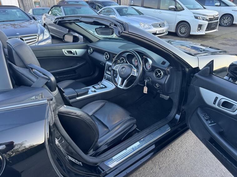 A BETTER SET OF 45 PHOTOS TOMORROW WHEN THE LIGHT IS BETTER THIS ULEZ COMPLIANT TURBO DIESEL 16 REG LOOKS AMAZING VALUE @£6500.00 Mercedes-Benz SLK 2.1 SLK250d 7 SPEED AUTOMATIC G-Tronic Euro 6 (s/s) 2dr TURBO DIESEL POWER ROOF CONVERTIBLE IT LOOKS AMAZING IN THE BEST COLOUR EBONY METALLIC CONTRASTING BLACK LEATHER SEATS AND ALUMINIUM TRIMOR S TT DAY OO THE DASH AND DOOR CARDS YES VERY SMART. THE LAST OWNER HAS LOVED AND CHERISHED THE CABRIOLET FOR YEARS & YOU CAN TELL THAT BY THE SUPERB CONDITION THE IS IN YES AND IT'S REALLY GOOD MILEAGE FOR THE YEAR 98K WITH A GOOD PART SERVICE HISTORY. THE ROADSTER HAS A POWER CONVERTIBLE SUNROOF, FACTORY BLUETOOTH TELEPHONE CONNECTION, FACTORY COLOUR SCREEN SAT NAV, UNIT STEREO RADIO/CD-PLAYER, REMOTE CONTROL CENTRAL LOCKING SYSTEM, 17'' ALLOY WHEELS WITH GOOD TYRES.THERE ARE 2 REMOTE KEYS AND ALL THE BOOKS AND MANUALS This 2016 Mercedes Benz SLK250d boasts an impressive provenance, having been owned by only two careful keepers. This stylish convertible features a powerful yet efficient 2.1L diesel engine, meeting Euro 6 emissions standards for cleaner driving. Inside, you'll find a comfortable cabin equipped with air conditioning to keep you cool, a Bluetooth interface for seamless hands free calls, and a USB port for your devices. The six speaker sound system ensures an enjoyable audio experience, while the Headlamp Assist automatically activates the headlights when needed, adding to the convenience.Experience exceptional performance with this SLK250d, capable of accelerating from 0 to 62 miles per hour in just 6.6 seconds. This model stands out with its remarkable fuel economy, achieving an impressive 71 miles per gallon, which is significantly better than many other vehicles in its class. Furthermore, its low CO2 emissions contribute to a more environmentally friendly drive. You'll also appreciate the generous boot space, offering practicality for your journeys..