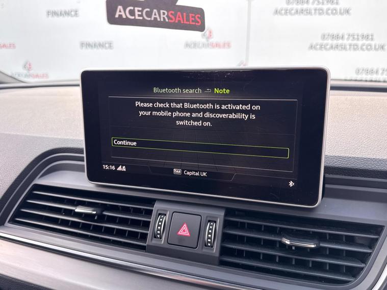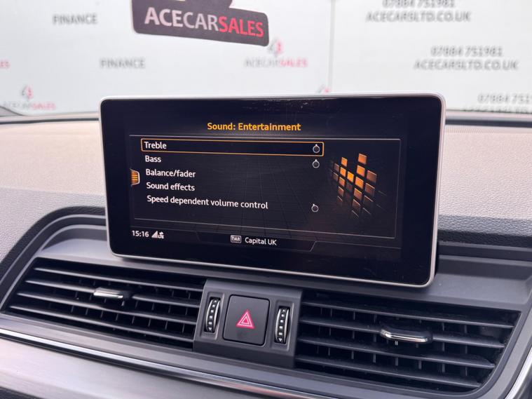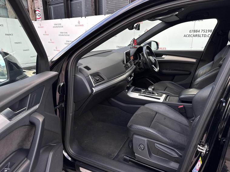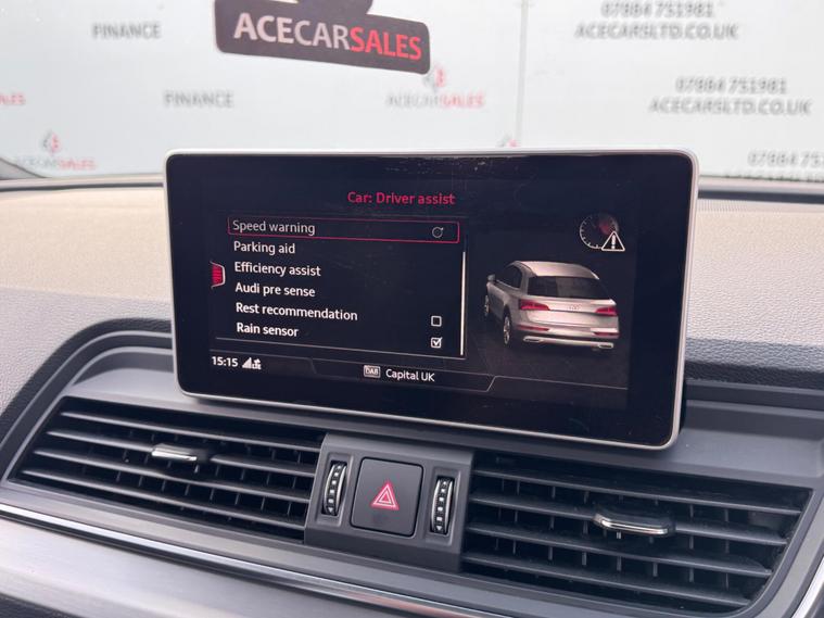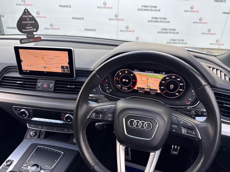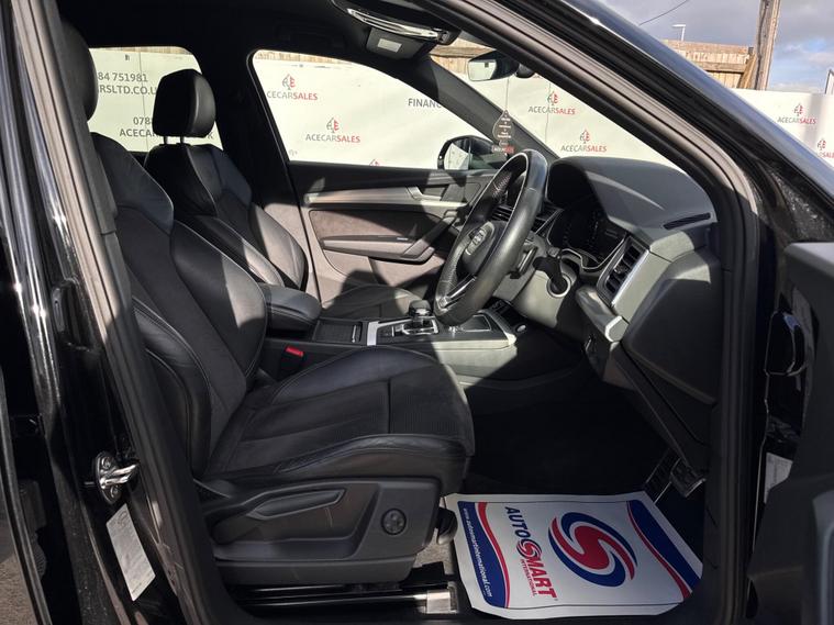FINANCE & PCP AVAILABLE, COMPLEMENTARY WARRANTY INCLUDED, GOOD CONDITION, WE TAKE PART EXCHANGE! Audi Q5 2.0 TDI S line S Tronic quattro Euro 6 (s/s) 5dr. HPI Clear, Full Service History With Audi Services, 12 Months MOT Included With No Advisories, 2 Owners, 2 Keys, EURO6 ULEZ Compliant, Fuel Consumption 54.3MPG, Keyless Start, Cruise Control, Speed Limiting Function, Speed Warning Function, Parking Sensors - Front And Rear, Start/Stop Function, Audi Pre-Sense City, Rest Recommendation System, Efficiency Assist, Comfort Dynamic Suspension, Electromechanical Power Steering, QUATTRO, Audi Drive Select Offroad/Efficiency/Comfort/Auto/Dynamic/Individual With Settings, Paddle Shifts, Sports Gearbox Mode With Manual Shifting, Hill Descent Control, Hill Hold Assist, Electromechanical Parking Brake, Traction Control, Electronic Stabilisation Control, Anti Lock Braking System, Anti Slip Regulation, Electronic Differential Lock, Tyre Pressure Warning Light, Headlights - Automatic, LED Headlights, Daytime Running Lights, LED Rear Lights and Dynamic Rear Indicators, LED Interior Lighting Pack, Light and Rain Sensor, Electric Windows, Electric Mirrors, Folding Mirrors, Electric Opening/Closing Tailgate, Driver And Passenger Lumbar Adjustment, Heated Front Seats, Automatic Dual Zone Climate Control, Air Conditioning, Front And Rear Screen Demisters, Colour Screen Media Interface, Virtual Cockpit With Changing Views And Drivers Information Display, Audi Phone Box With Wireless Charging, Smartphone Interface, Navigation, Traffic Information, Bluetooth, Radio, DAB, AUX, USB, Telephone Connection, Voice Control, Multifunctional Steering Wheel, Alcantara & Leather Seats In Black, S Line & QUATTRO Interior Design, Aluminium Design Door Sill Trims With Alcantara Door Card, Exterior Badging, Aluminium Roof Rails, 19inch Alloy Wheels. ALL VEHICLES ARE FULLY INSPECTED PRIOR TO SALE. We can assist you in securing finance for your New car with ease- regardless of your credit! We include a COMPLEMENTARY WARRANTY on all our vehicles. Be our next happy customer today! dealer's website
