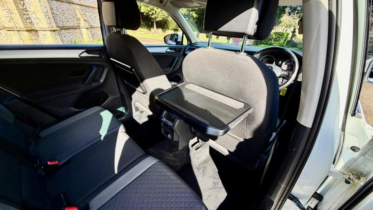 - Tray on Rear of Front Seats - Rubberised for Non Slip with Cup Holder to the Side - Cable Secure Hook to Left