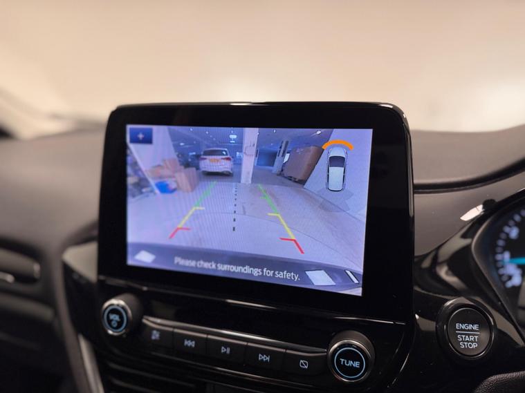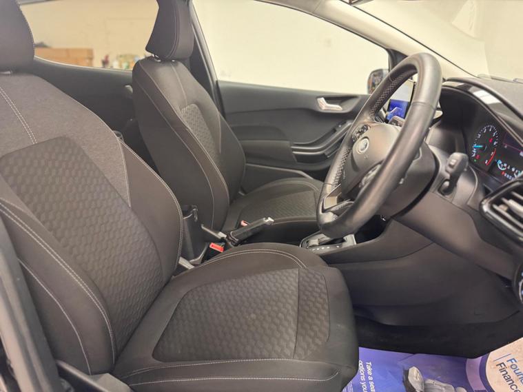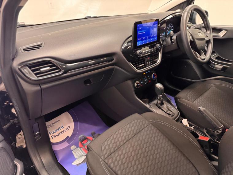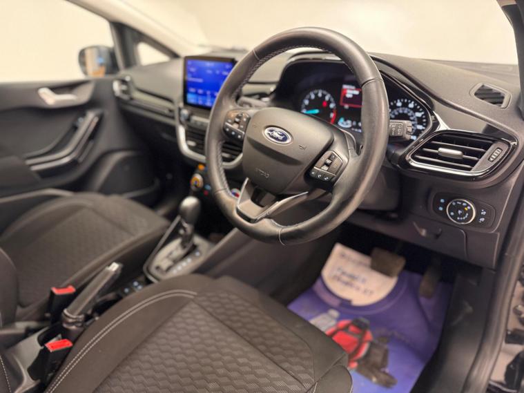 This 2022 Ford Fiesta T Titanium is a superb example, having had only one owner since new. This Euro 6 compliant model boasts a 1.0 litre petrol hybrid engine, offering an efficient and responsive drive. It comes equipped with the desirable Parking Pack, featuring front and rear sensors along with a rear camera to make manoeuvring effortless. The Driver Assistance Pack includes adaptive cruise control for relaxed motorway journeys, while the Winter Pack adds heated seats and a heated steering wheel for comfort in colder weather. Inside, you'll find the SYNC 3 system with navigation, seamlessly integrating with Android Auto and Apple CarPlay, and automatic headlights ensure optimal visibility.The performance of this Fiesta is noteworthy, achieving 0-62mph in just 9.6 seconds, demonstrating its lively acceleration. This quick acceleration, combined with its advanced features like adaptive cruise control and the comprehensive parking assistance, sets it apart from other vehicles in its class. The inclusion of heated seats and a heated steering wheel further enhances its appeal, offering a more comfortable experience for all occupants. This well appointed Fiesta T Titanium represents a compelling choice for those seeking a modern, feature rich, and enjoyable driving experience..