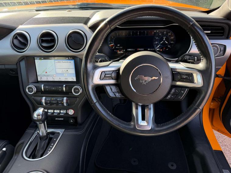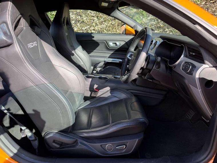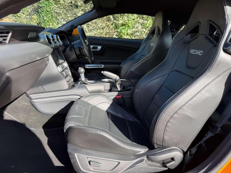 Presented in stunning Orange Fury, this Ford Mustang GT is a perfect example of modern American muscle blended with everyday usability and premium specification. With its aggressive stance, unmistakable V8 presence and desirable factory options, this car delivers the full Mustang experience both visually and behind the wheel.This example comes fitted with 19in Forged 5x2 Spoke Alloy Wheels in Gloss Black, complementing the bold exterior perfectly, while the cabin features Salerno Leather in Ebony alongside highly sought-after Recaro Sports Seats, giving superb support and a true performance feel. The Custom Pack 4 adds further refinement and driver-focused upgrades, making this a very well-specced car compared to standard examples.Inside, comfort and technology are equally impressive, with climate controlled seats, Apple CarPlay, reverse camera, Shaker premium sound system, lane assist, and adaptive cruise control, creating a perfect balance between performance and daily drivability.Mechanically, the car has been maintained exactly as it should be, backed by full Ford service history, giving total confidence in its upkeep and ownership.Key Features Include:Orange Fury Metallic19in Forged 5x2 Spoke Alloy Wheels – SilverRecaro Seats in Ebony LeatherSalerno Leather – Ebony InteriorCustom Pack 4Climate Controlled Front SeatsApple CarPlayReverse CameraShaker Premium Speaker SystemLane AssistAdaptive Cruise ControlFull Ford Service HistoryA properly specified Mustang GT like this offers the perfect mix of raw V8 character, modern technology and everyday comfort. A real head-turner with the right options and pedigree — ready for its next owner..