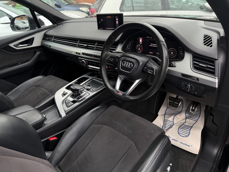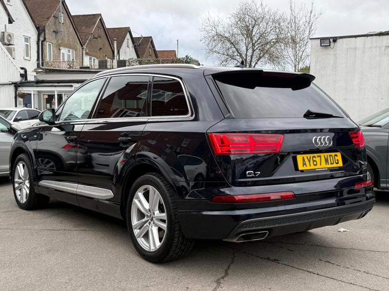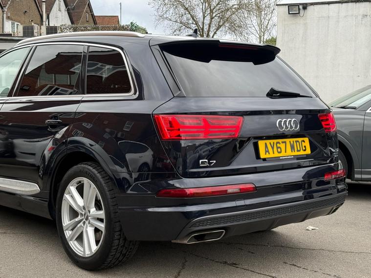 This 2017 Audi Q7 TDI V6 S line offers a compelling blend of luxury and practicality, boasting a powerful 3.0 litre diesel engine and a sophisticated four wheel drive system. As a Euro 6 compliant vehicle, it meets stringent emission standards, and with seven seats, it provides ample space for the whole family. The S line trim enhances its sporty appeal, while notable features include heated front seats for comfort, a Bluetooth interface for seamless connectivity, and deluxe four zone automatic climate control to ensure everyone's comfort. All weather LED headlights and a light and rain sensor add to the advanced technology and convenience.This Q7 stands out with an impressive fuel economy of 49 mpg, indicating its efficiency for a vehicle of its size and capability. Its acceleration from 0 to 62 mph in just 7.3 seconds demonstrates its strong performance, making it a capable and responsive drive. Furthermore, its low insurance group rating suggests that running costs are kept manageable, making it a sensible choice. With a substantial towing weight of 2800 kg, this Audi Q7 is also well equipped for carrying loads or towing a caravan or trailer..
